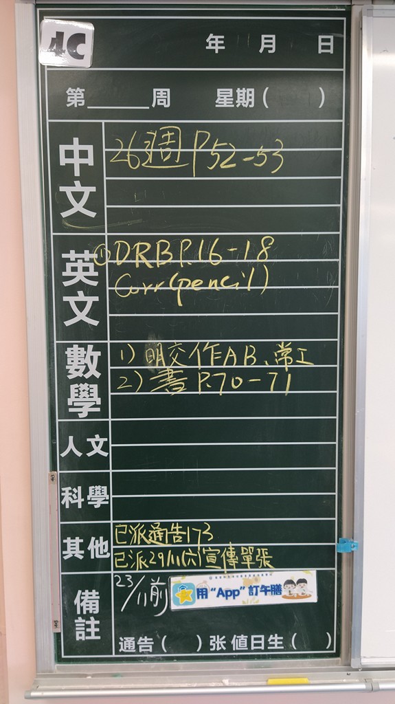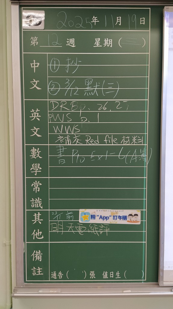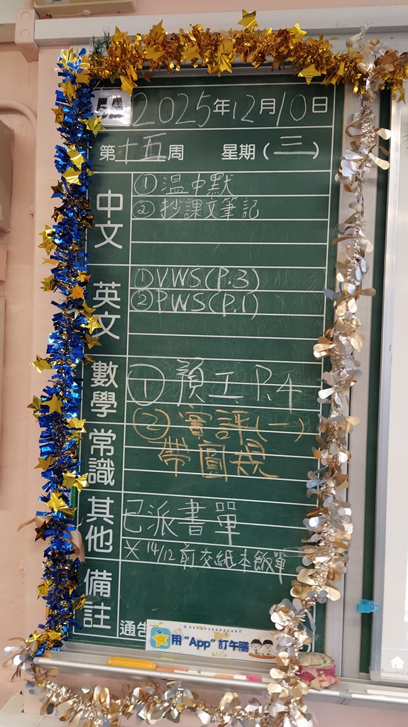 * 注意 :網上家課日誌只供參考,家課內容以上課時老師所述為準,同學應養成即時填寫手冊的習慣 *