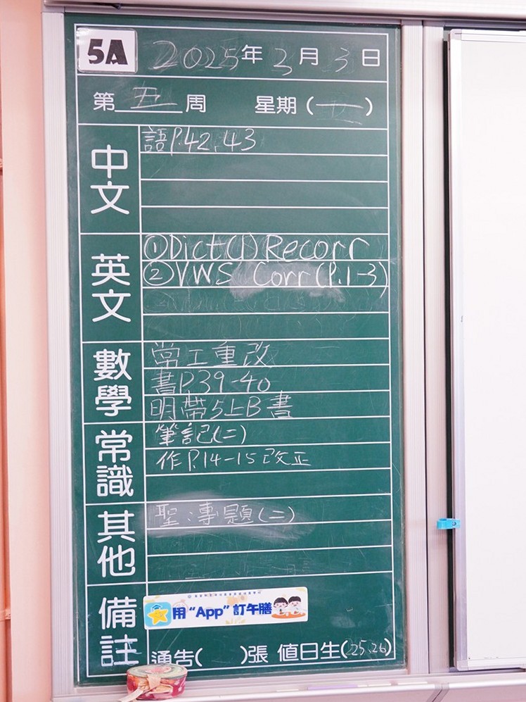 * 注意 :網上家課日誌只供參考,家課內容以上課時老師所述為準,同學應養成即時填寫手冊的習慣 *