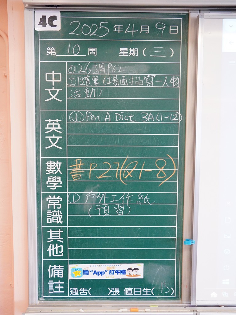 * 注意 :網上家課日誌只供參考,家課內容以上課時老師所述為準,同學應養成即時填寫手冊的習慣 *