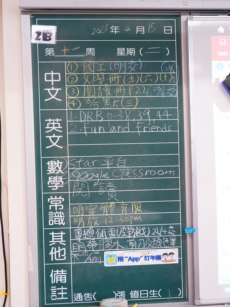 * 注意 :網上家課日誌只供參考,家課內容以上課時老師所述為準,同學應養成即時填寫手冊的習慣 *