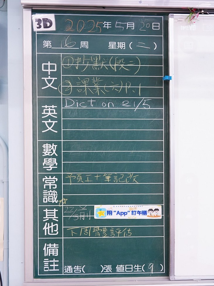 * 注意 :網上家課日誌只供參考,家課內容以上課時老師所述為準,同學應養成即時填寫手冊的習慣 *