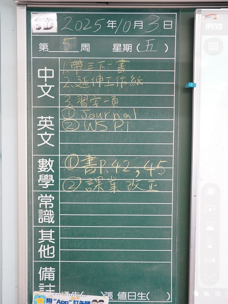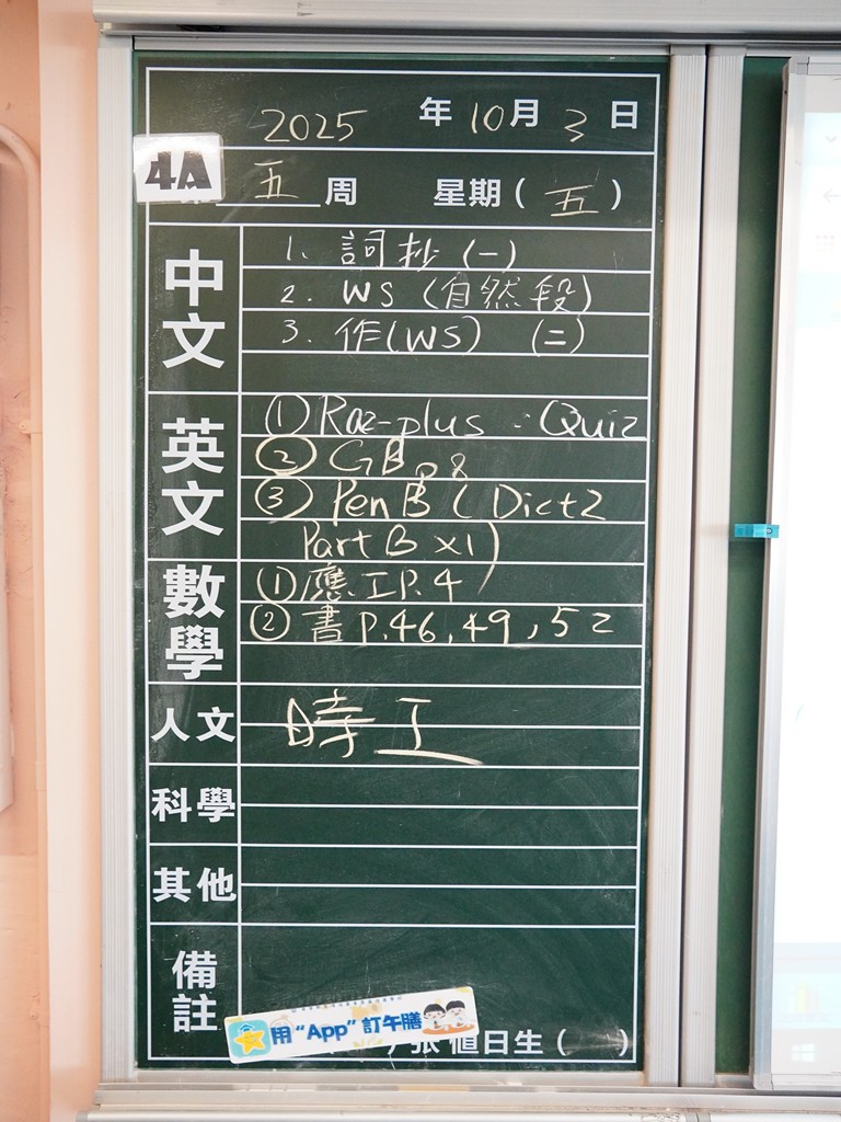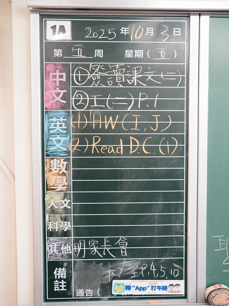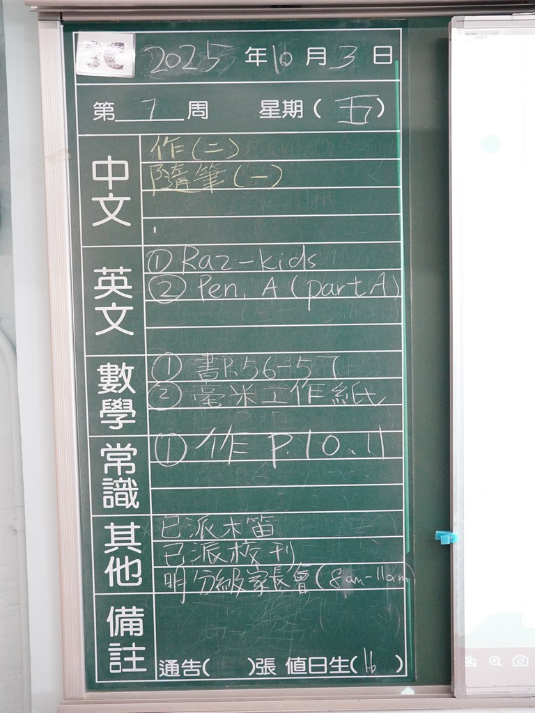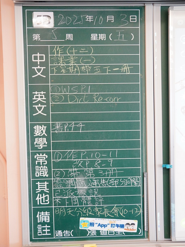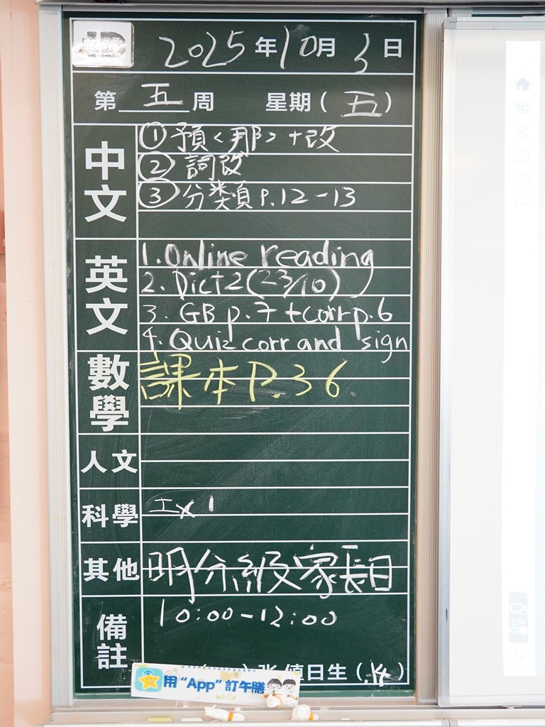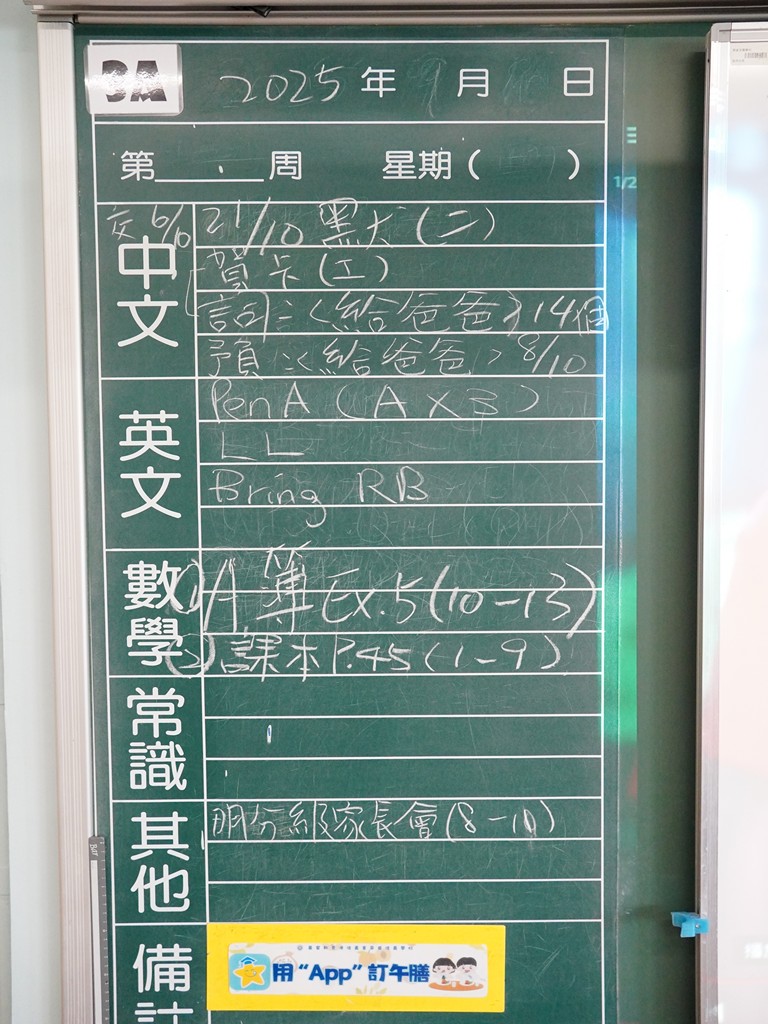 * 注意 :網上家課日誌只供參考,家課內容以上課時老師所述為準,同學應養成即時填寫手冊的習慣 *
