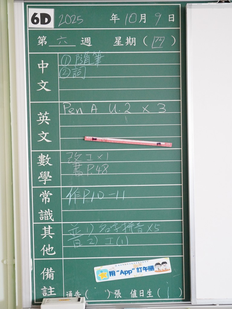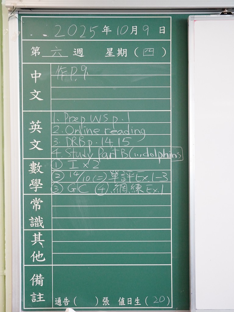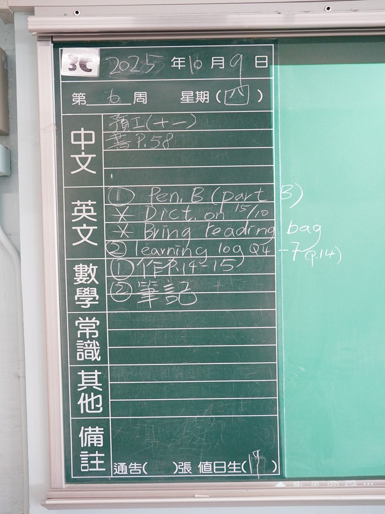 * 注意 :網上家課日誌只供參考,家課內容以上課時老師所述為準,同學應養成即時填寫手冊的習慣 *
