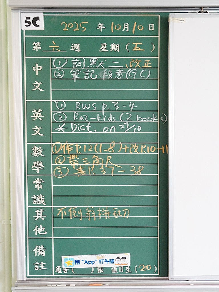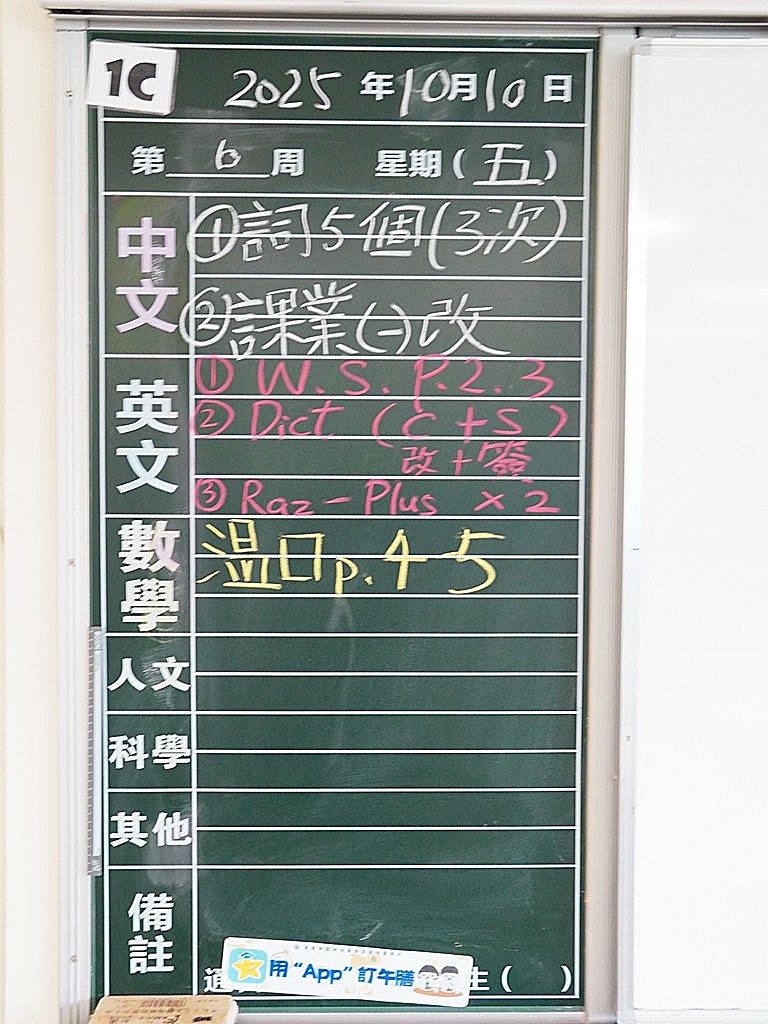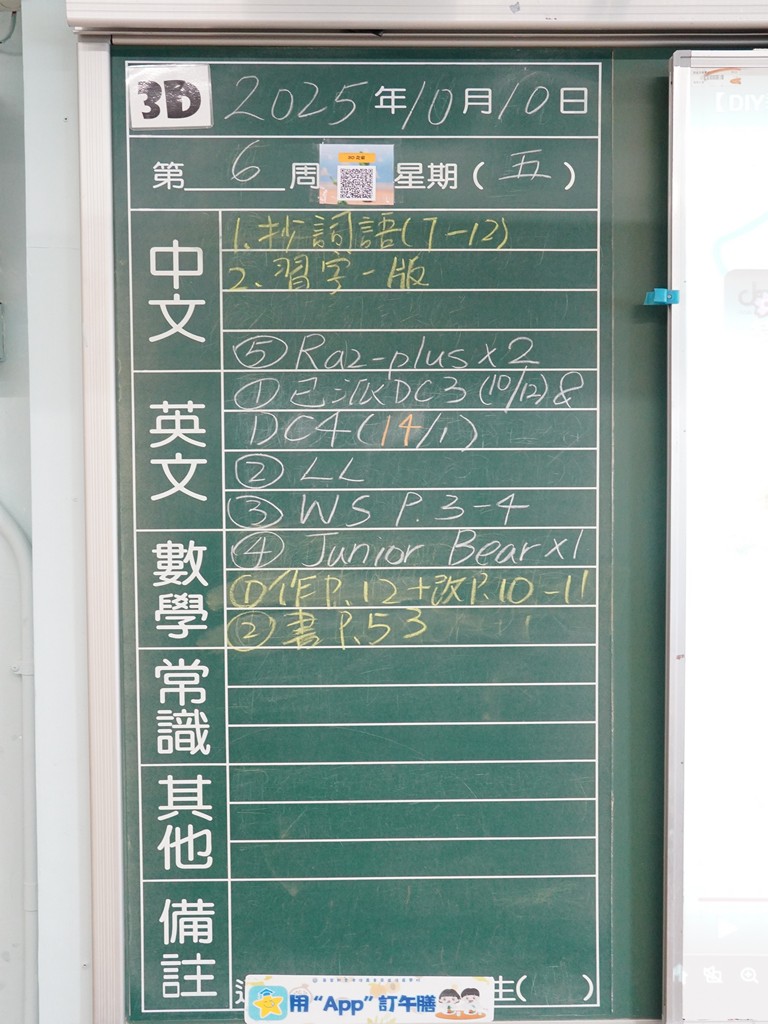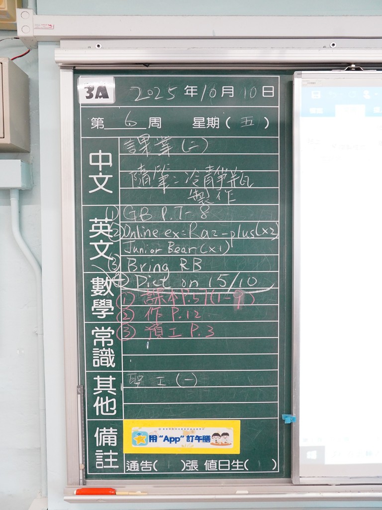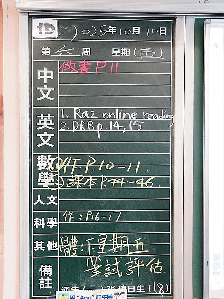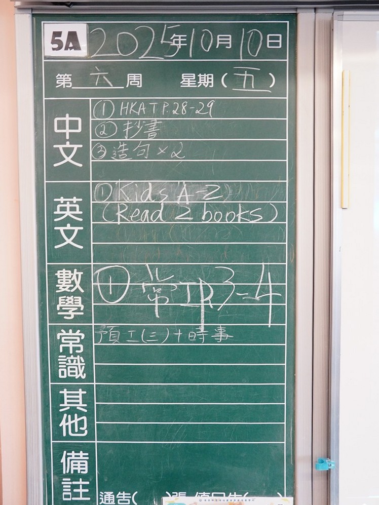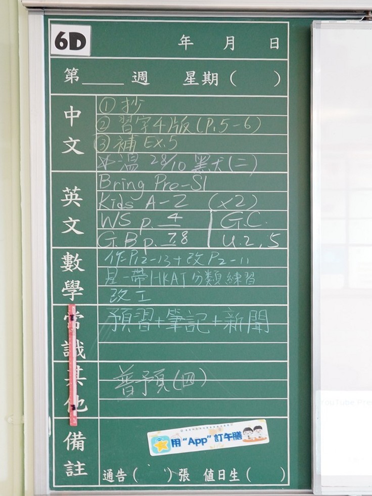 * 注意 :網上家課日誌只供參考,家課內容以上課時老師所述為準,同學應養成即時填寫手冊的習慣 *