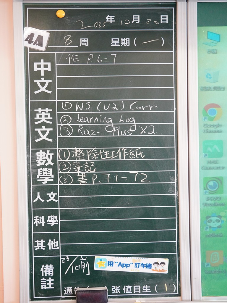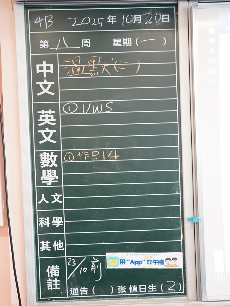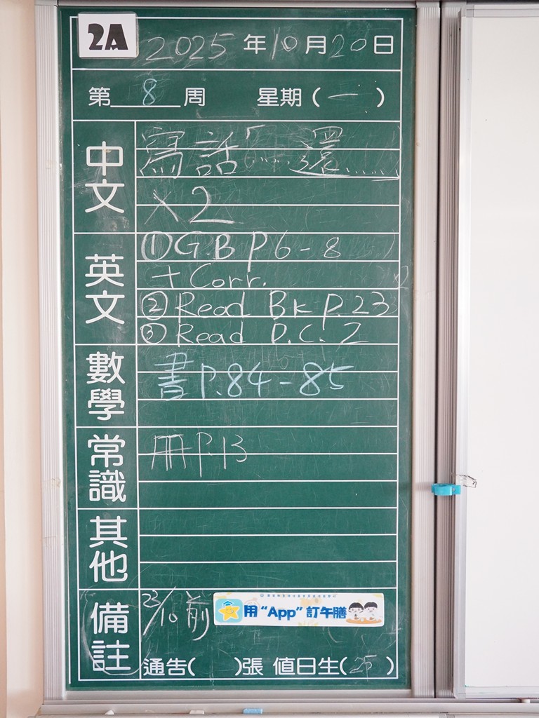 * 注意 :網上家課日誌只供參考,家課內容以上課時老師所述為準,同學應養成即時填寫手冊的習慣 *