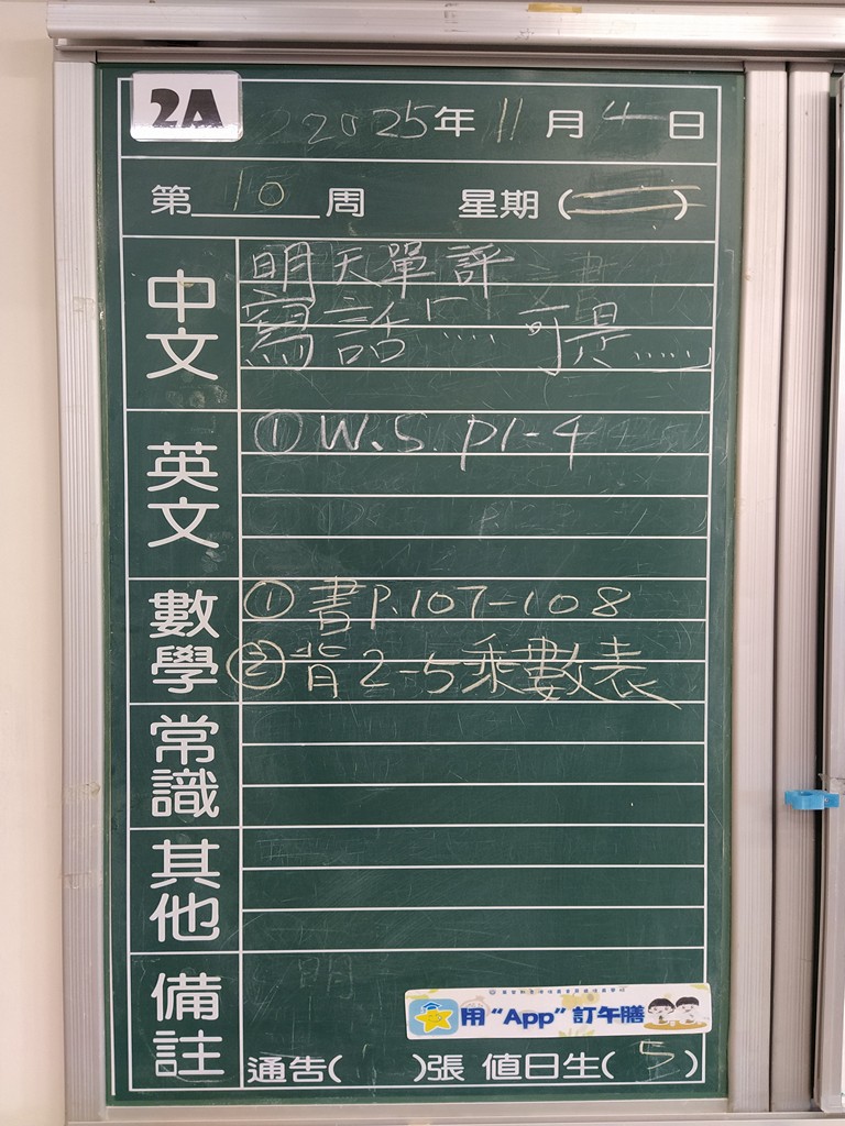* 注意 :網上家課日誌只供參考,家課內容以上課時老師所述為準,同學應養成即時填寫手冊的習慣 *