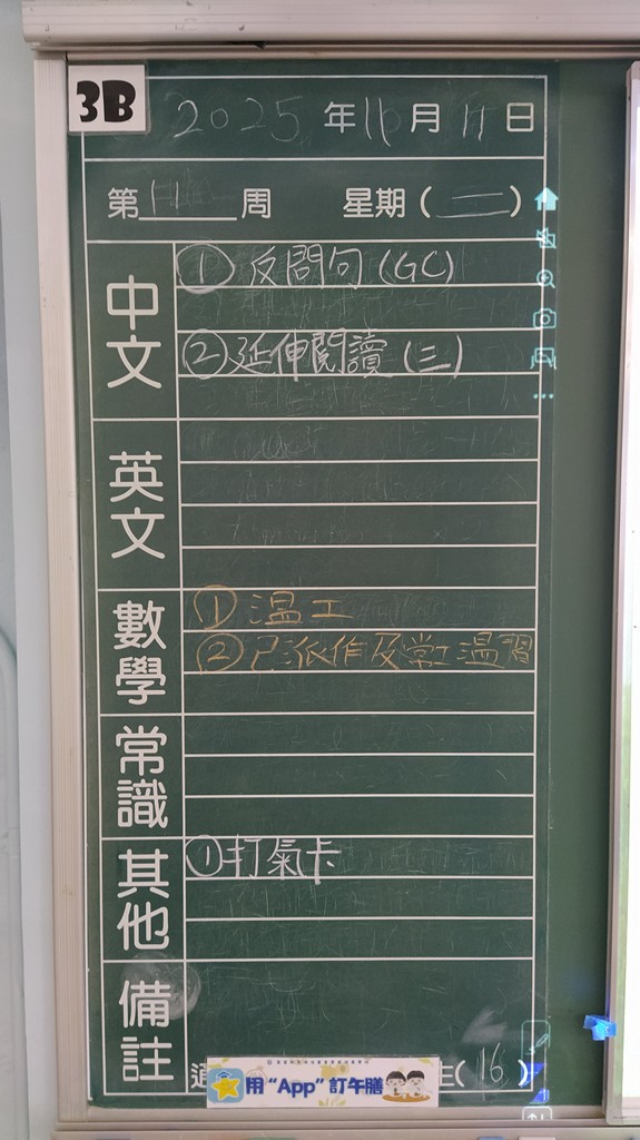 * 注意 :網上家課日誌只供參考,家課內容以上課時老師所述為準,同學應養成即時填寫手冊的習慣 *