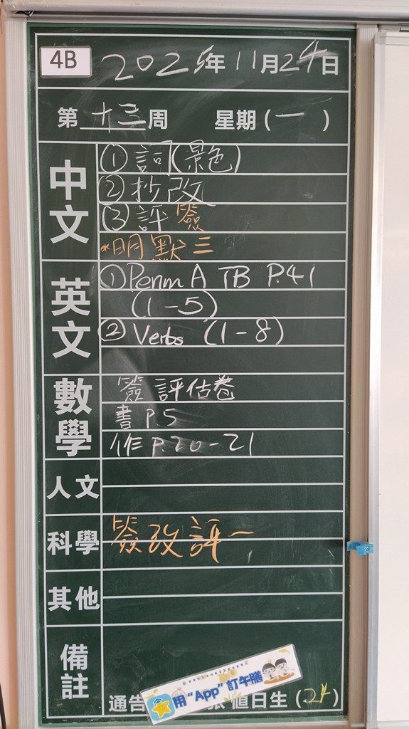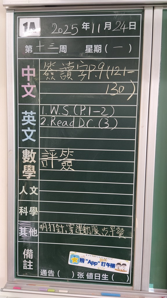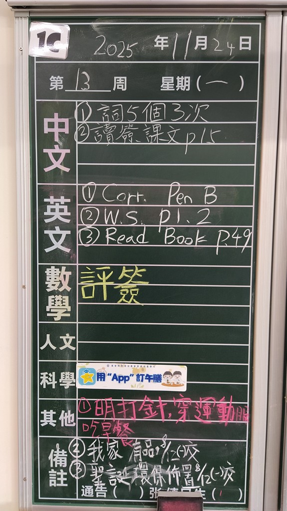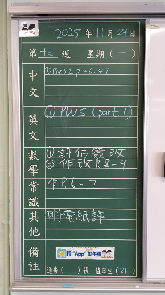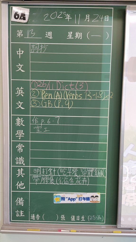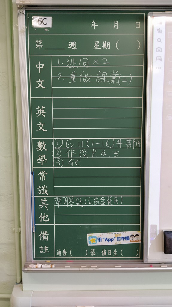 * 注意 :網上家課日誌只供參考,家課內容以上課時老師所述為準,同學應養成即時填寫手冊的習慣 *