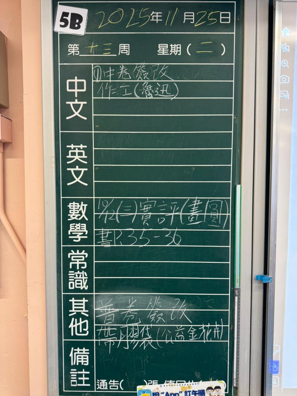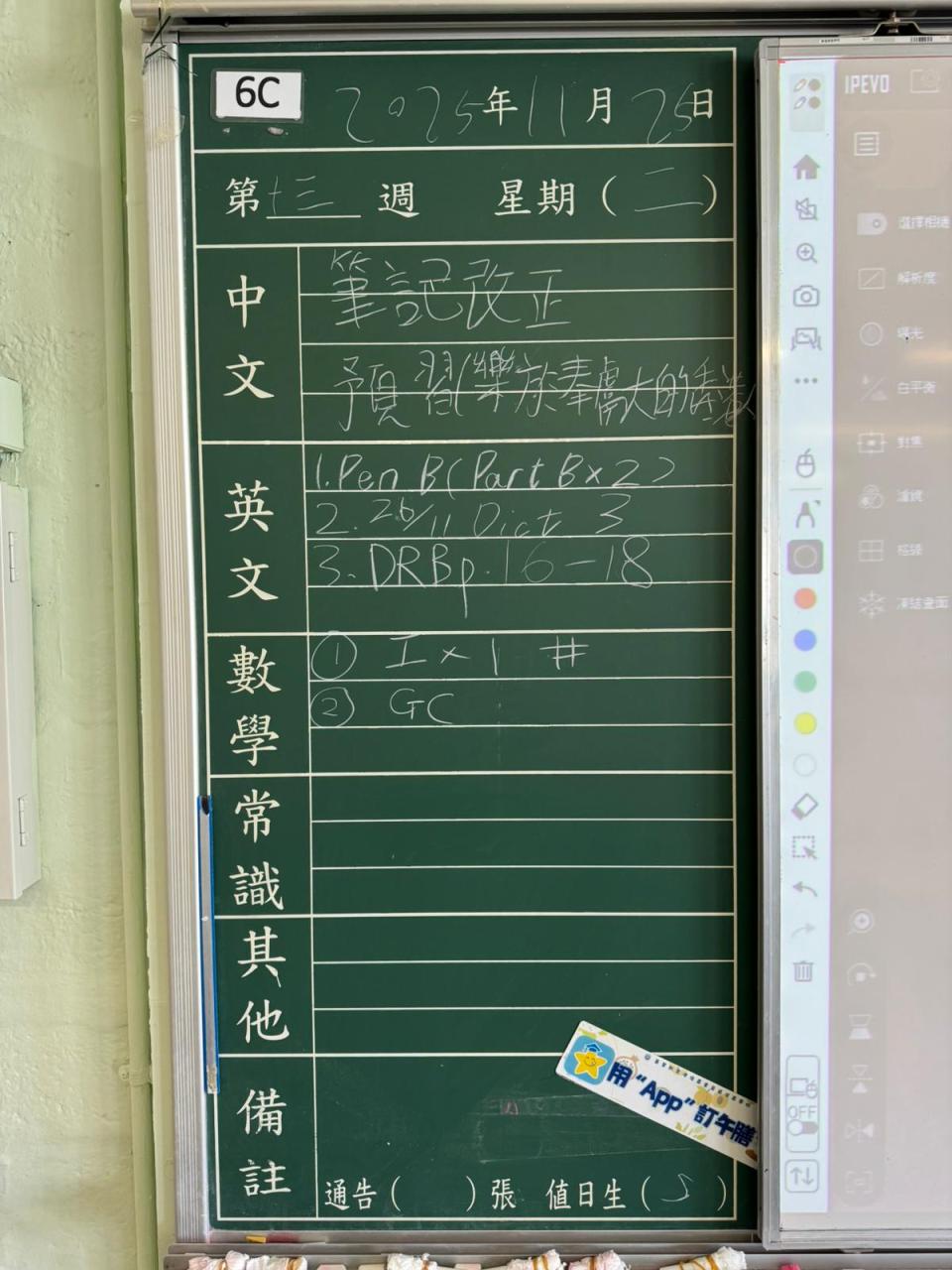 一至六年級家課