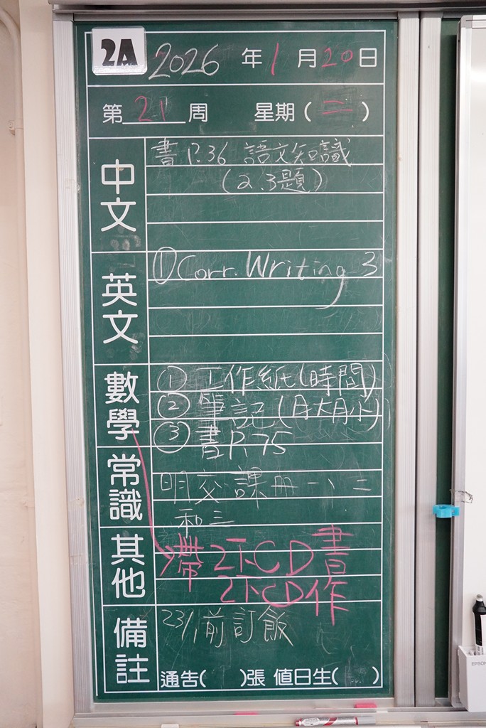* 注意 :網上家課日誌只供參考,家課內容以上課時老師所述為準,同學應養成即時填寫手冊的習慣 *