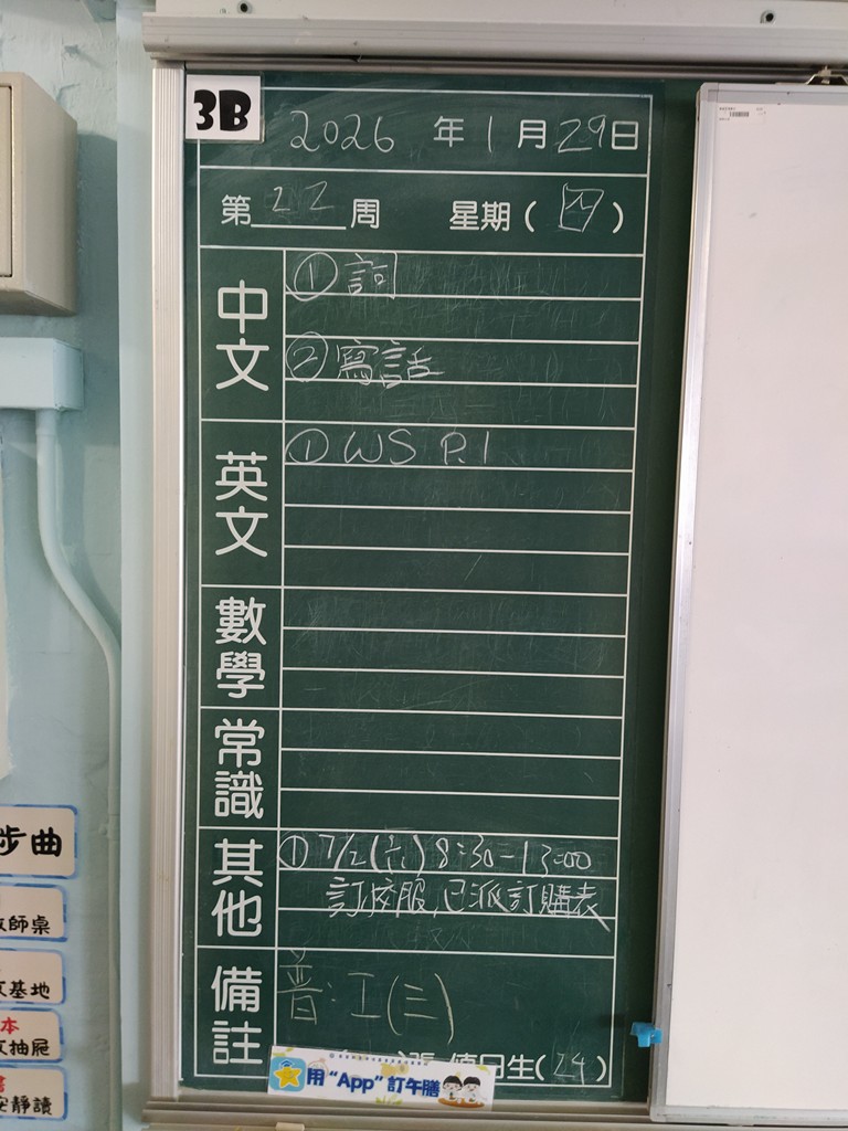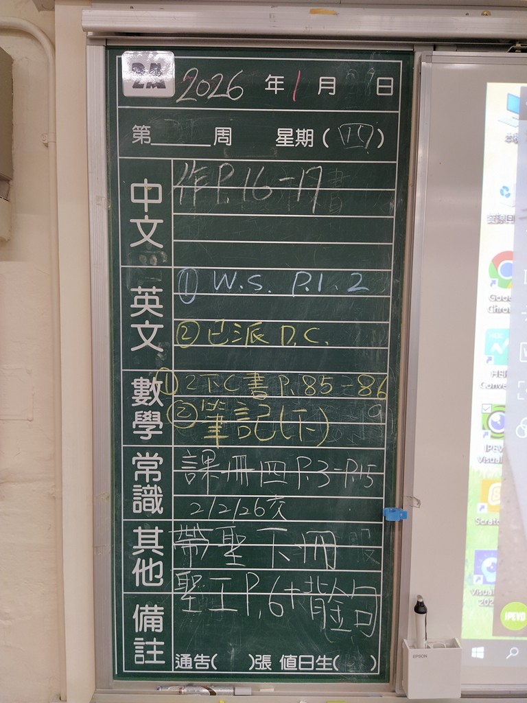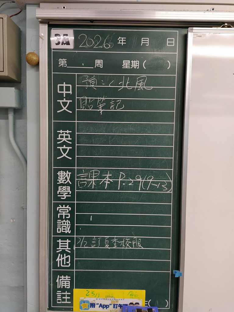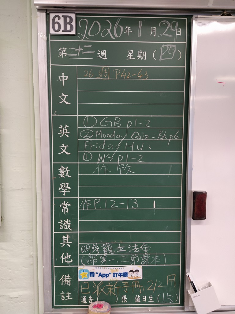* 注意 :網上家課日誌只供參考,家課內容以上課時老師所述為準,同學應養成即時填寫手冊的習慣 *