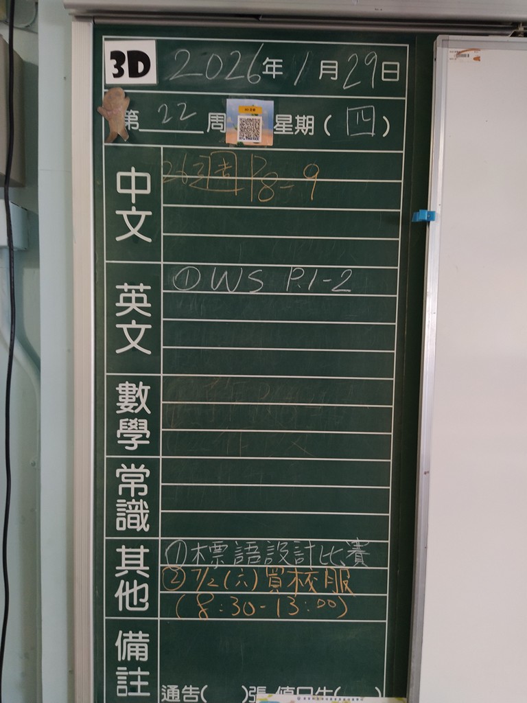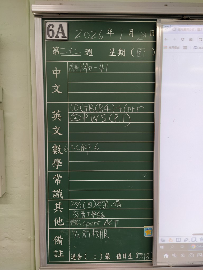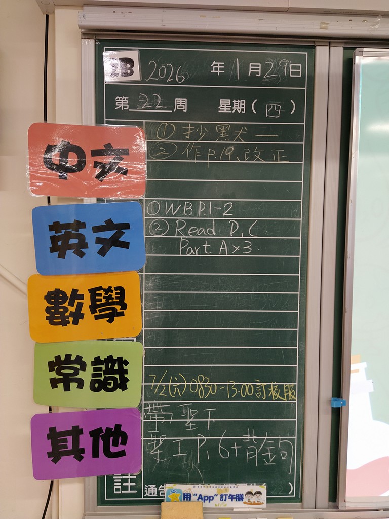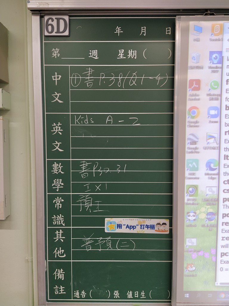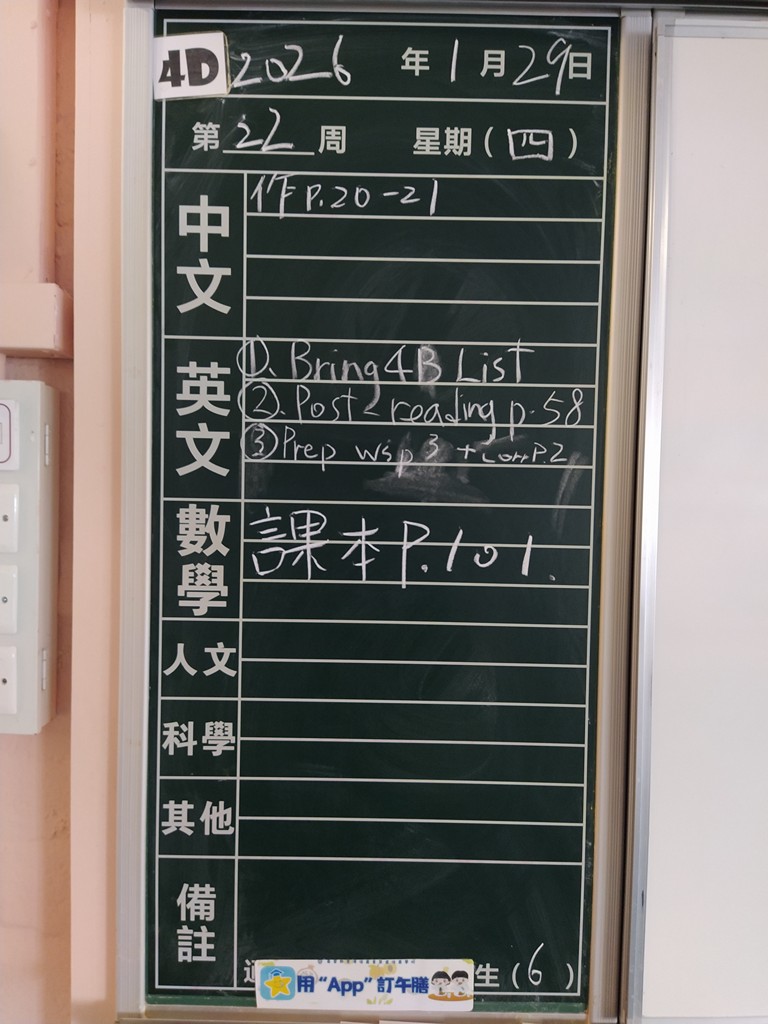* 注意 :網上家課日誌只供參考,家課內容以上課時老師所述為準,同學應養成即時填寫手冊的習慣 *