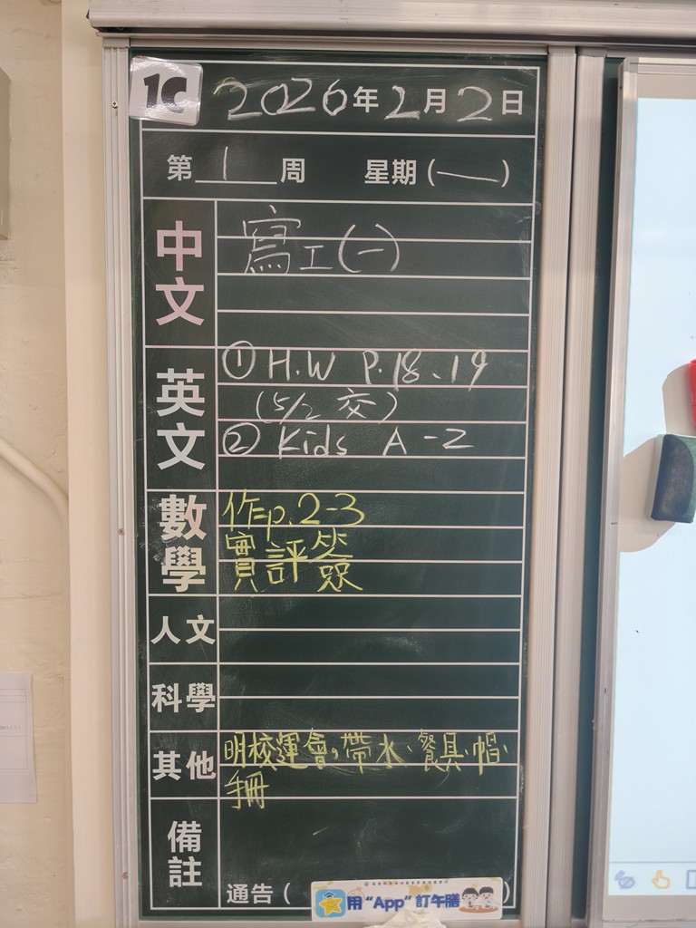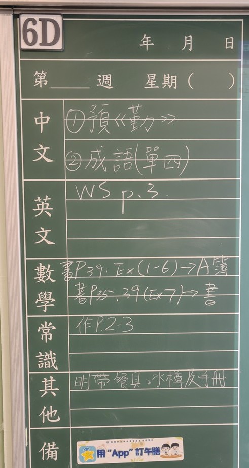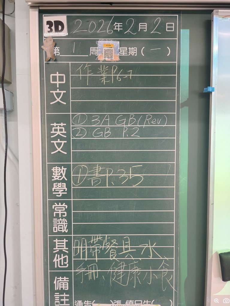 * 注意 :網上家課日誌只供參考,家課內容以上課時老師所述為準,同學應養成即時填寫手冊的習慣 *
