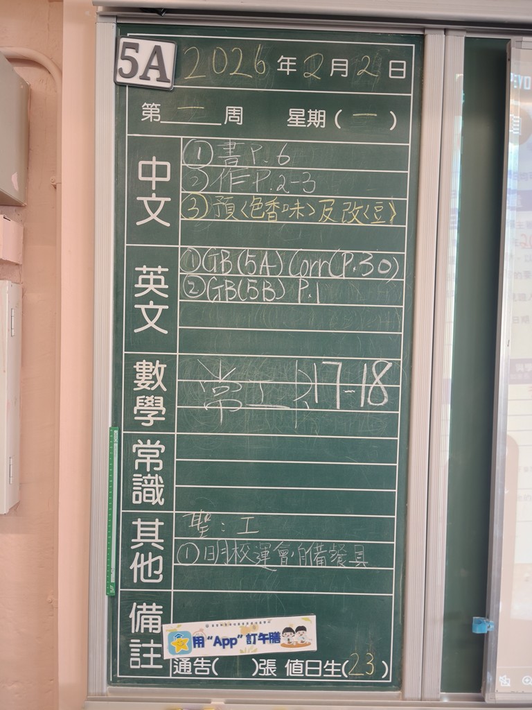 一至六年級家課