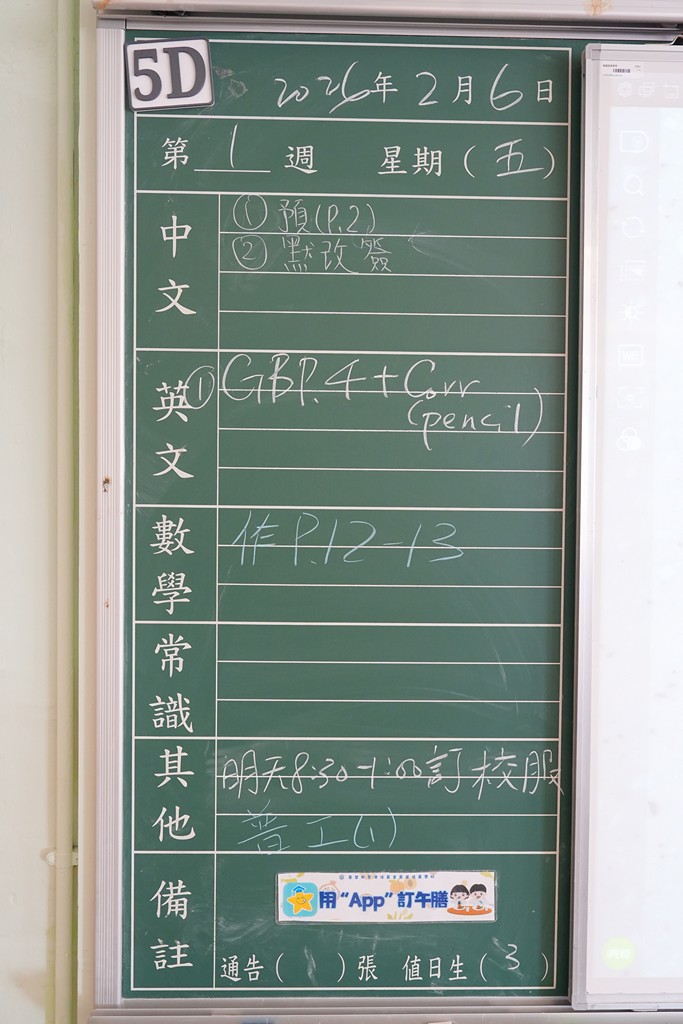 一至六年級家課