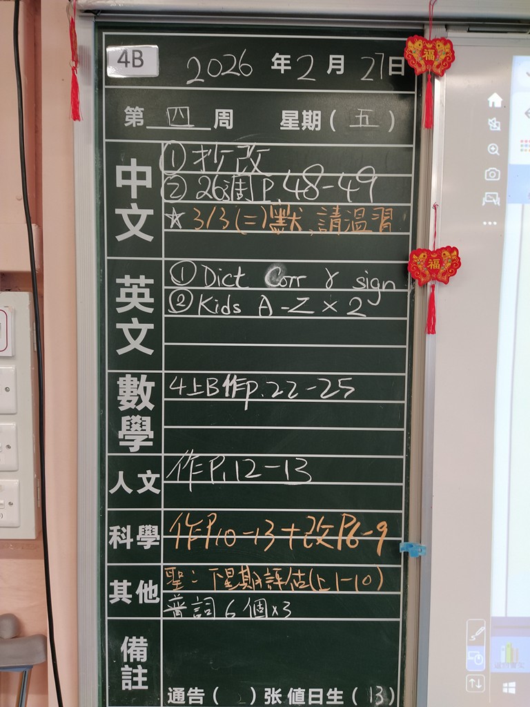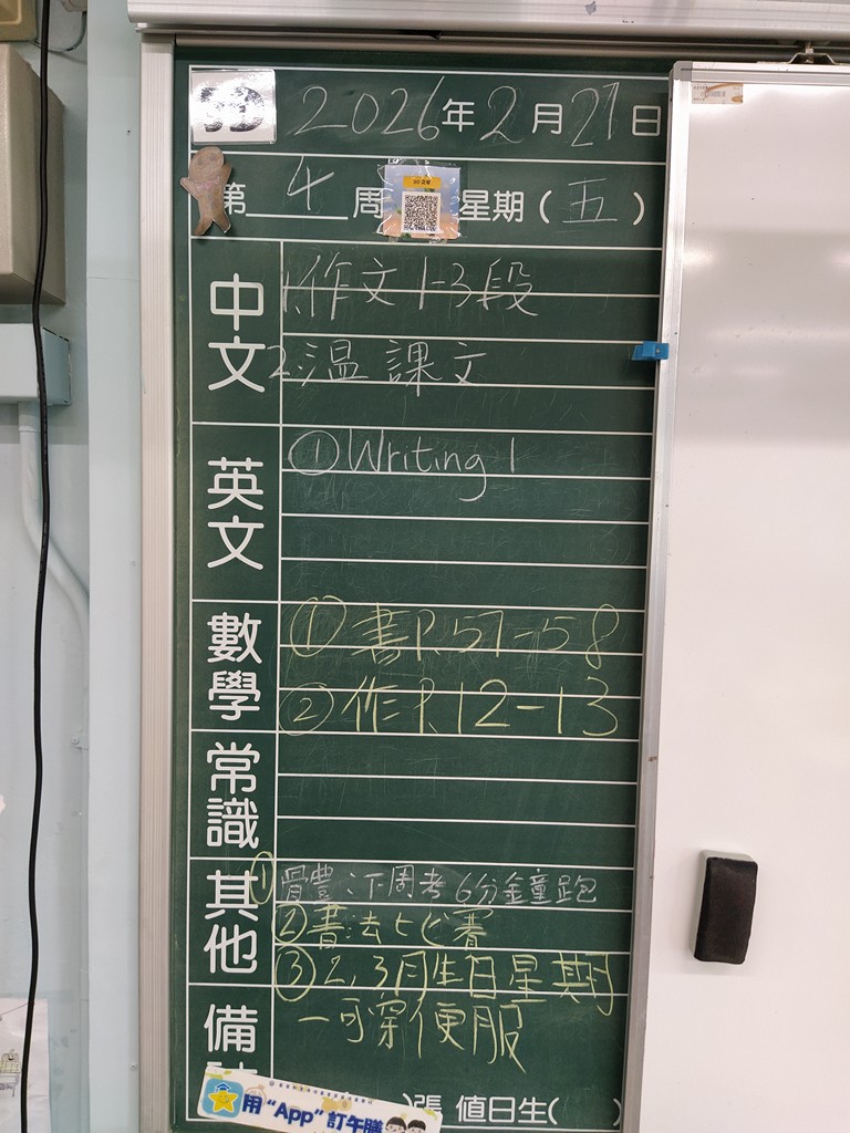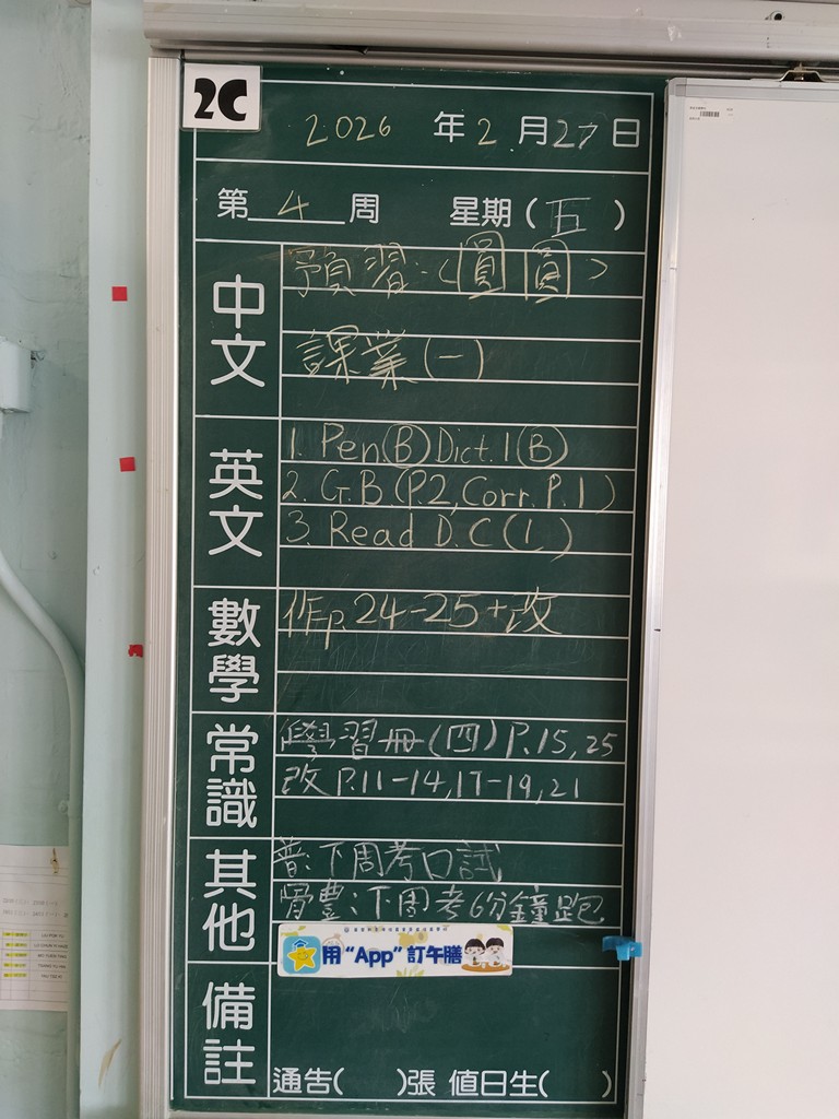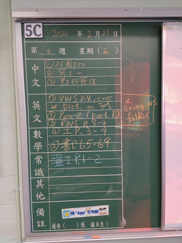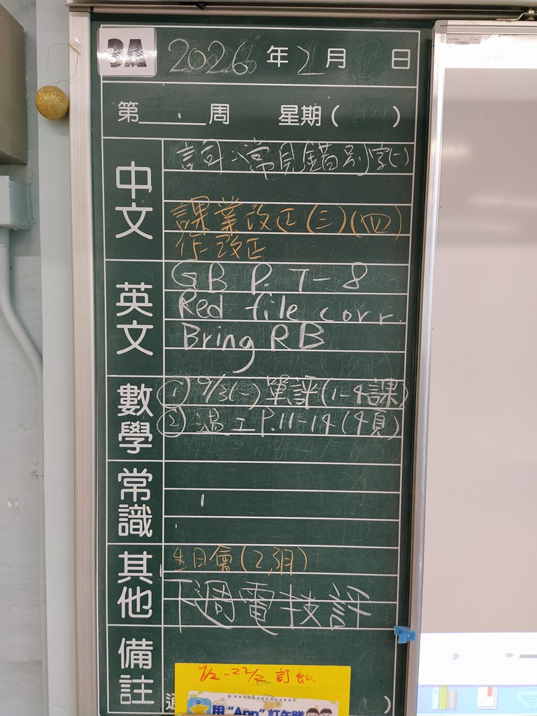 * 注意 :網上家課日誌只供參考,家課內容以上課時老師所述為準,同學應養成即時填寫手冊的習慣 *