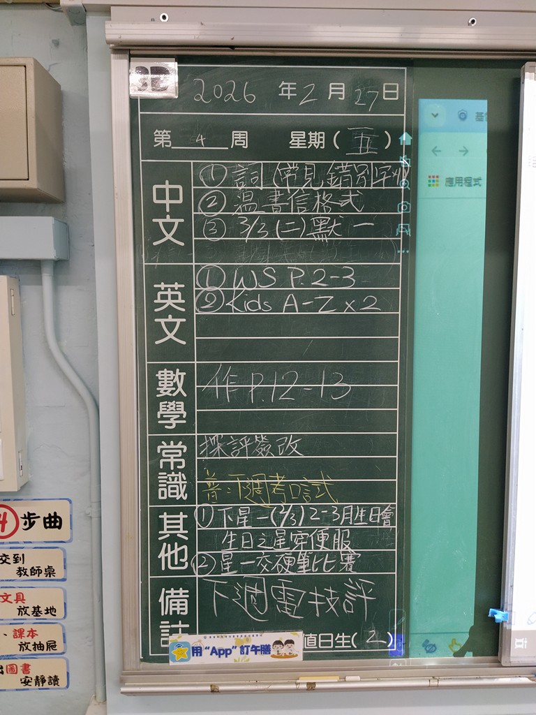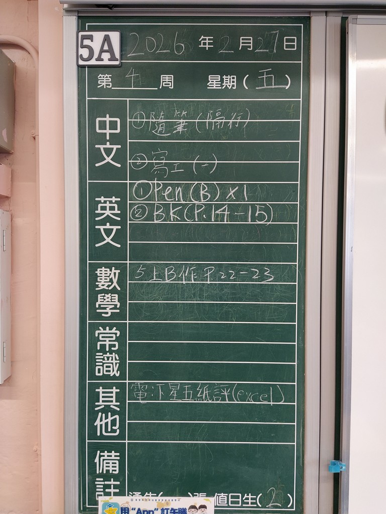 一至六年級家課