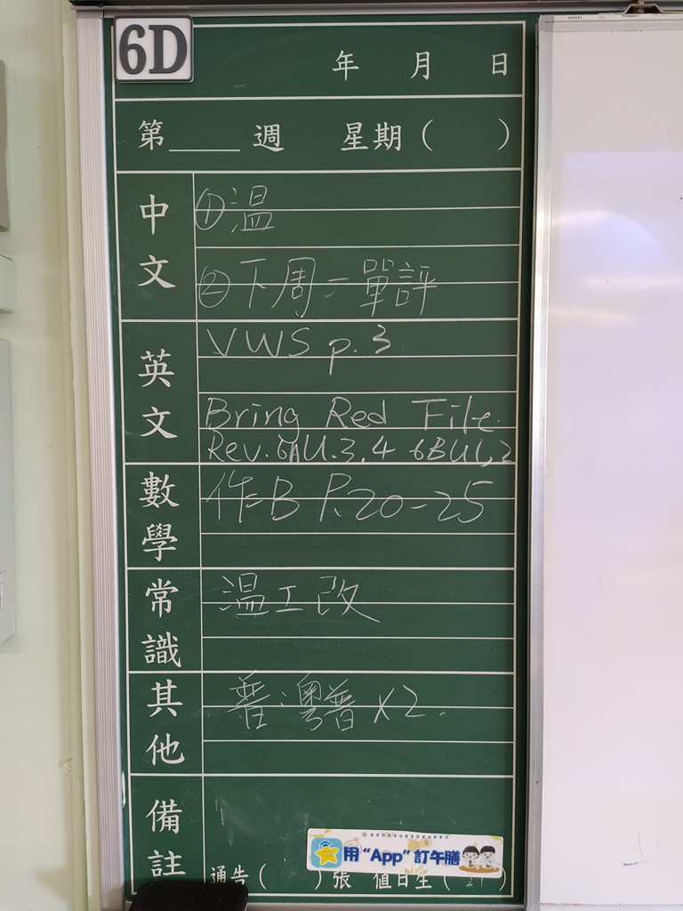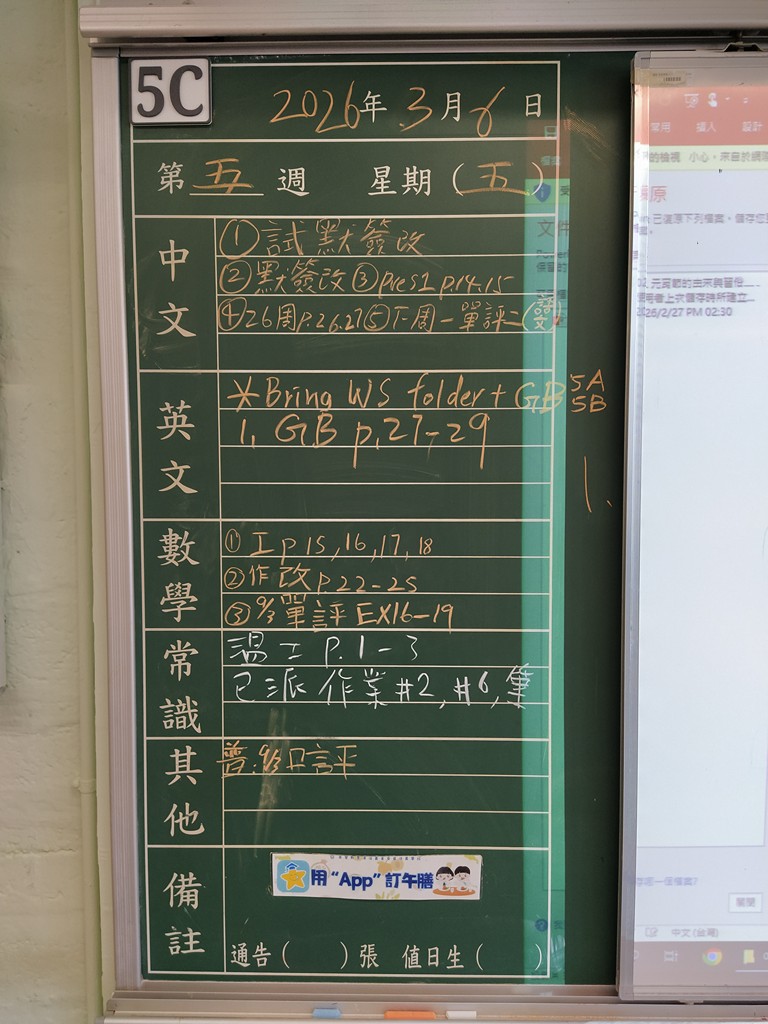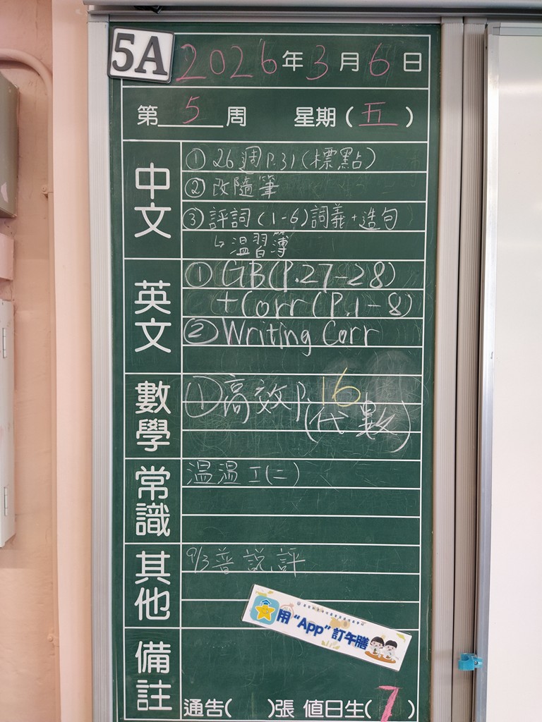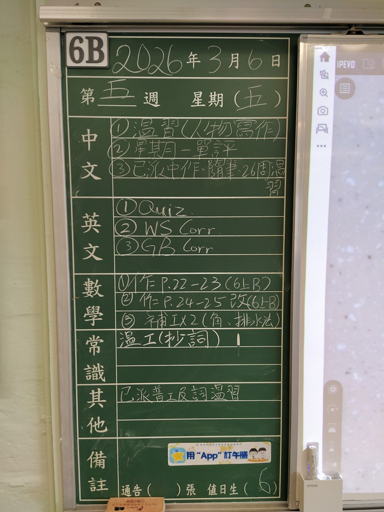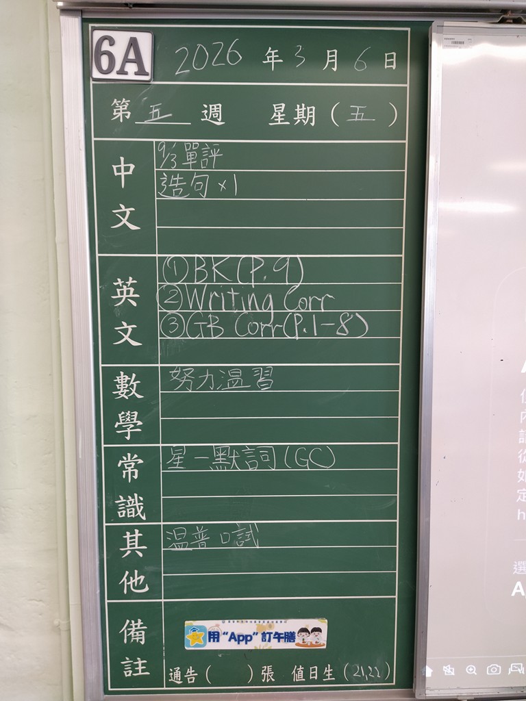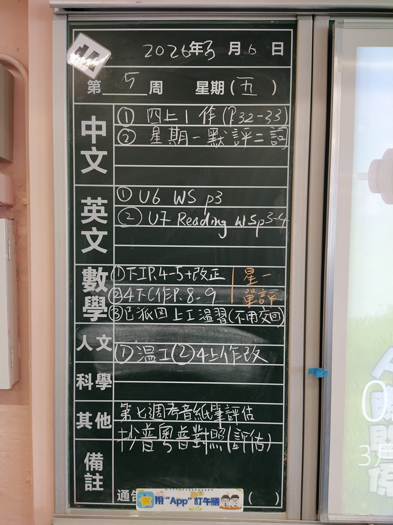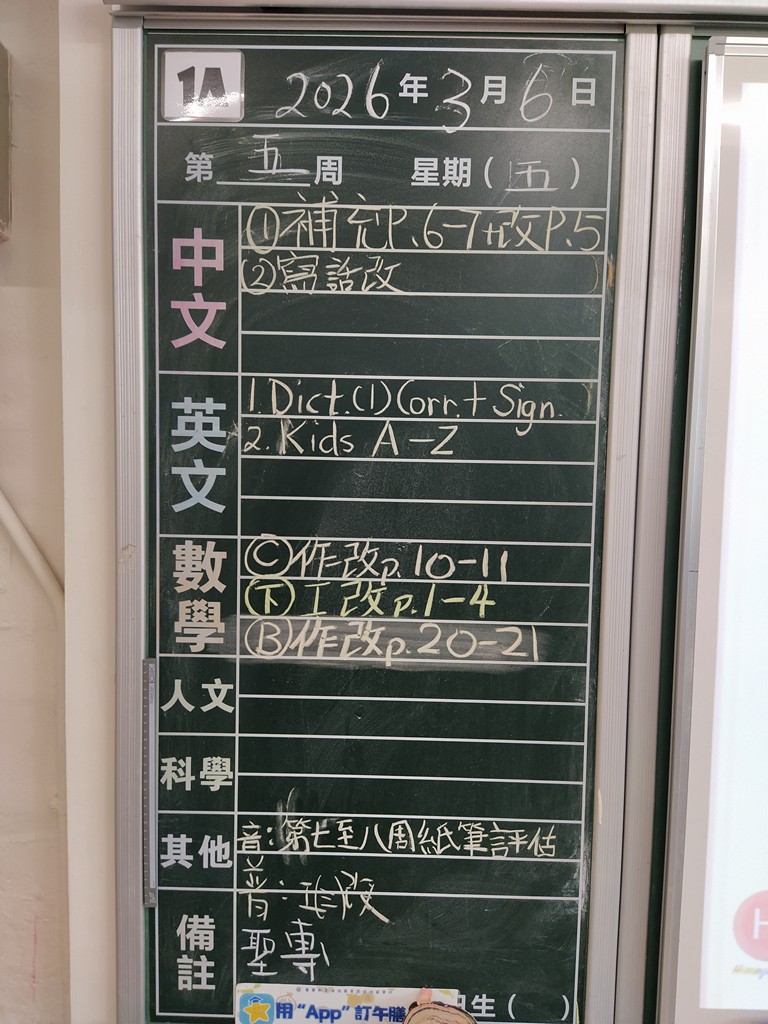 一至六年級家課