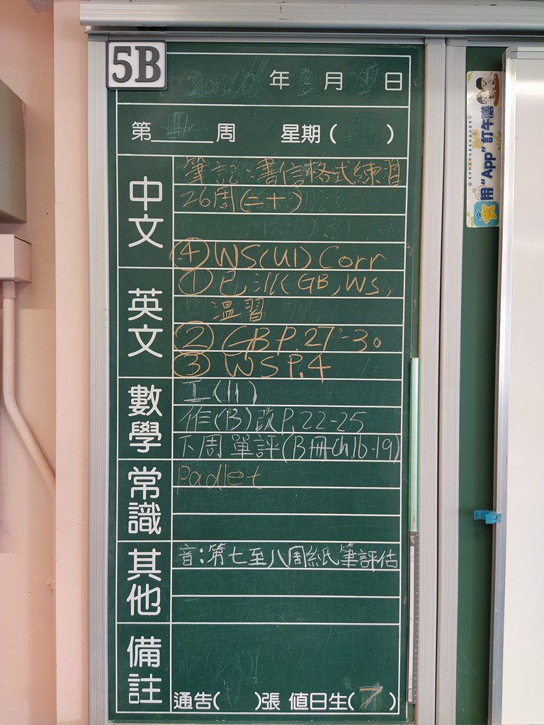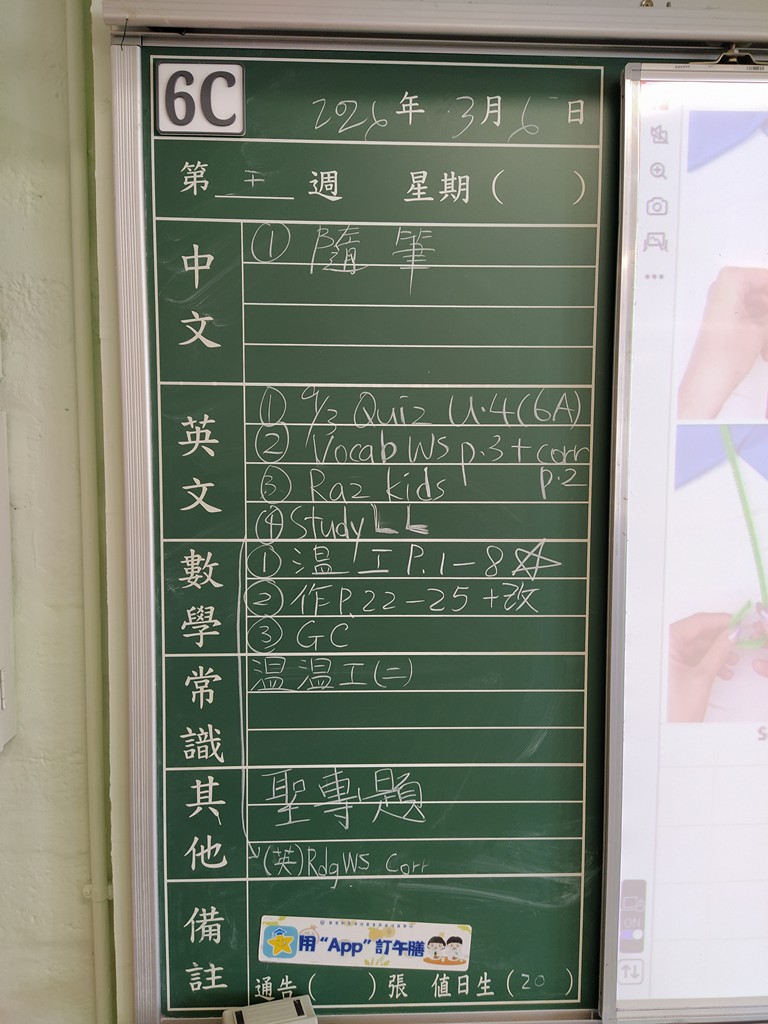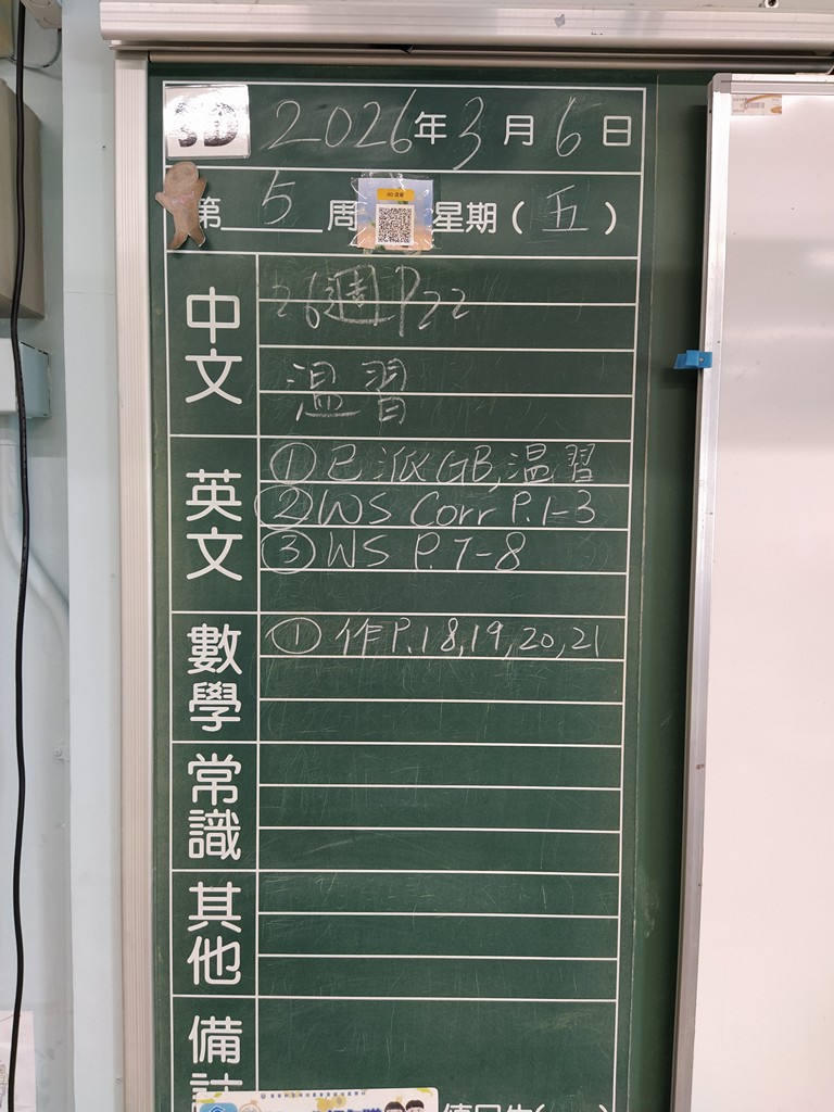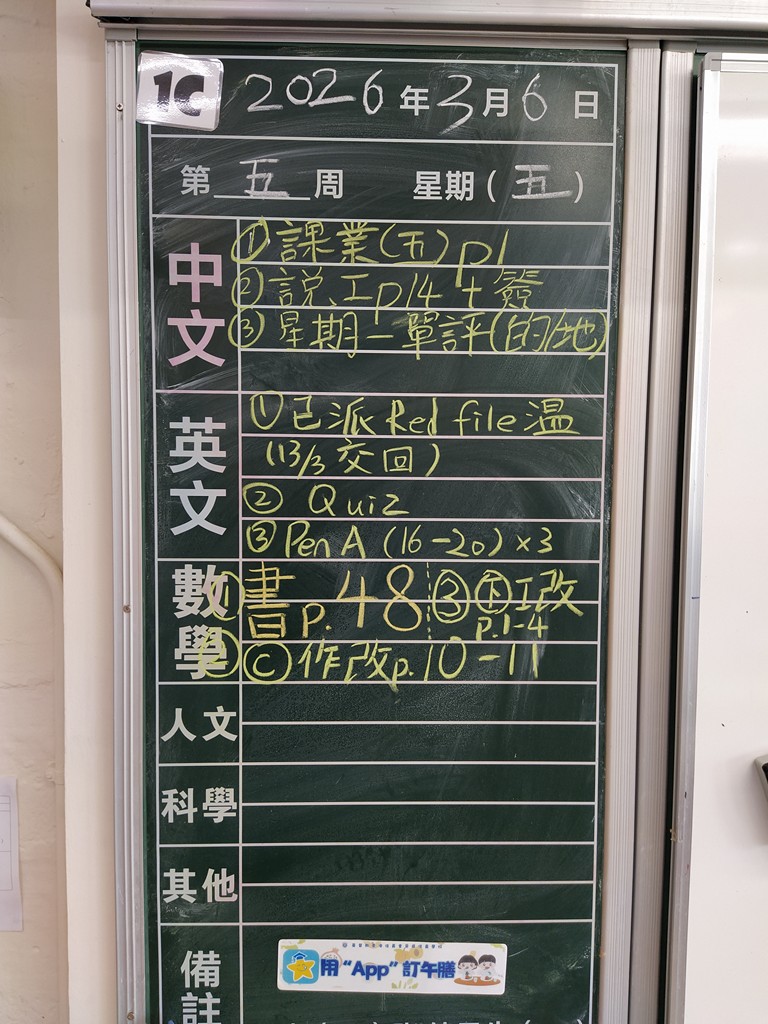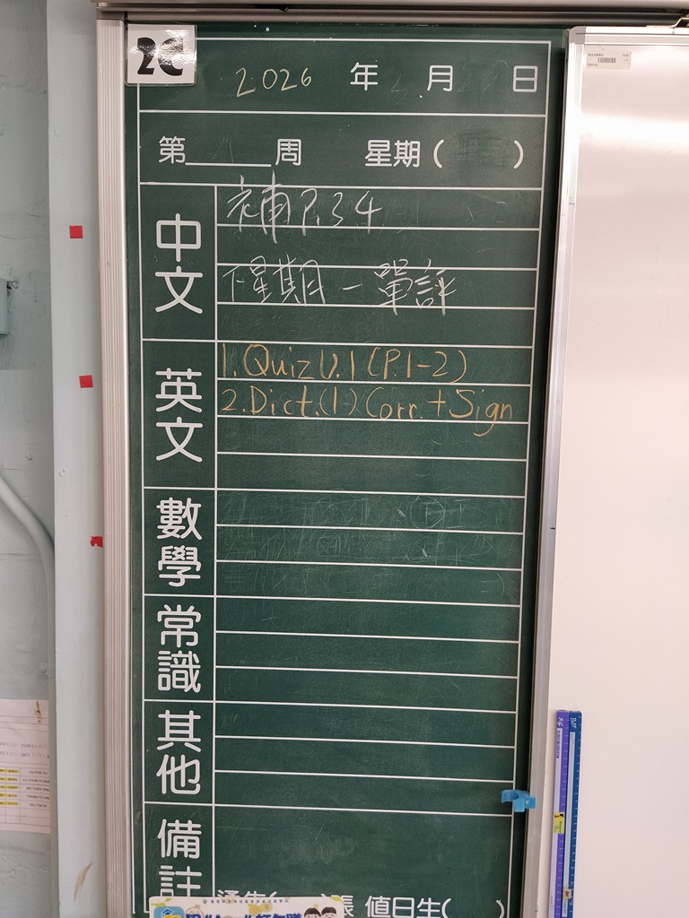* 注意 :網上家課日誌只供參考,家課內容以上課時老師所述為準,同學應養成即時填寫手冊的習慣 *