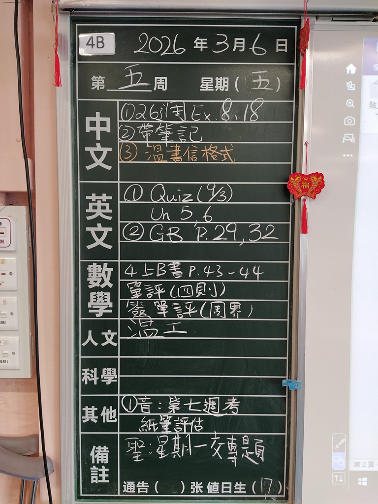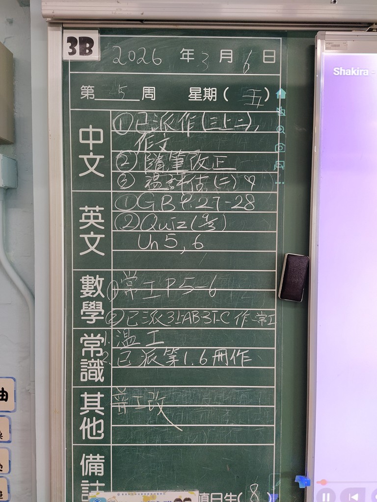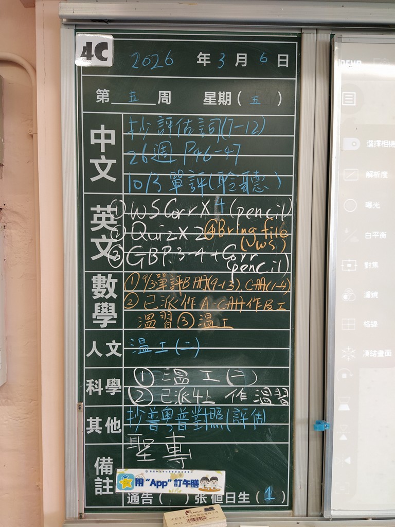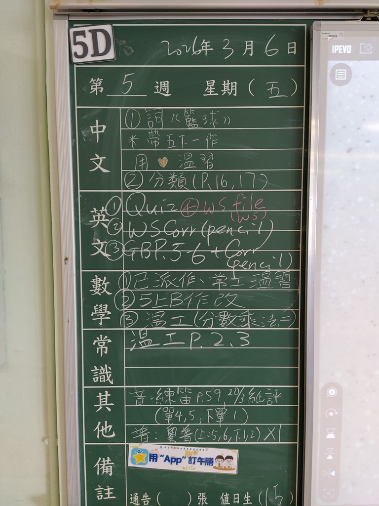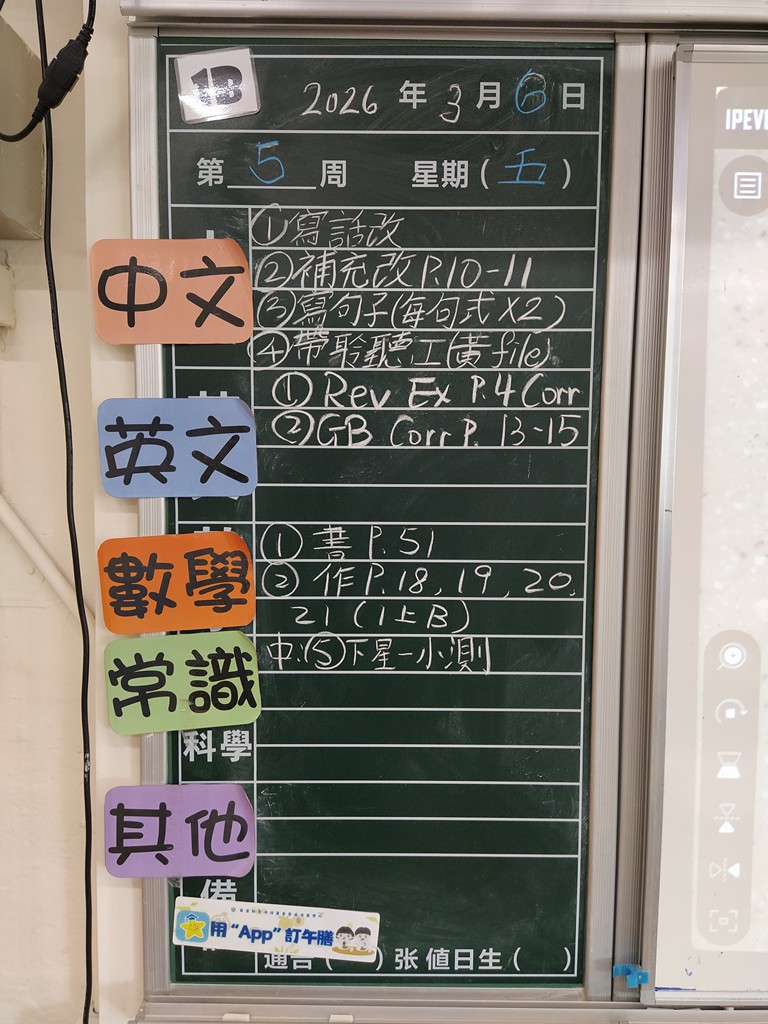 * 注意 :網上家課日誌只供參考,家課內容以上課時老師所述為準,同學應養成即時填寫手冊的習慣 *
