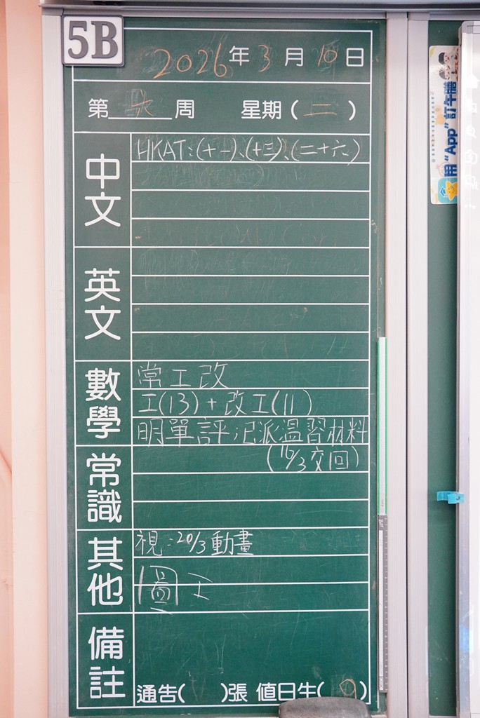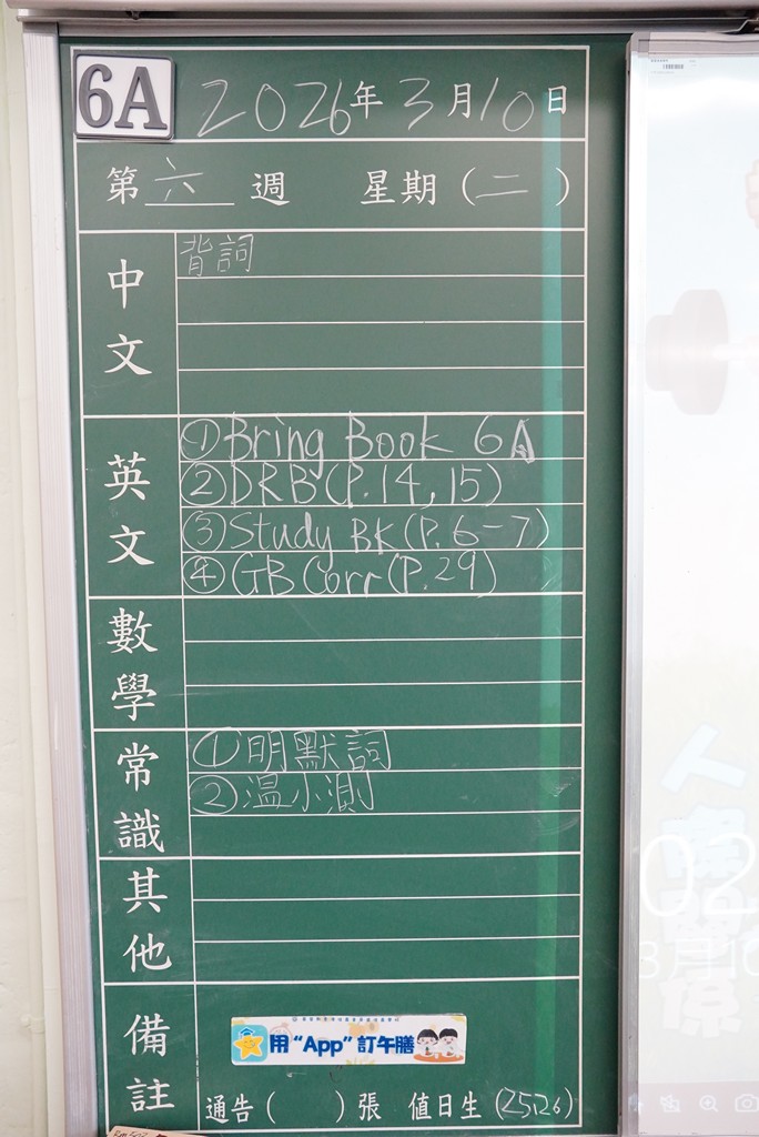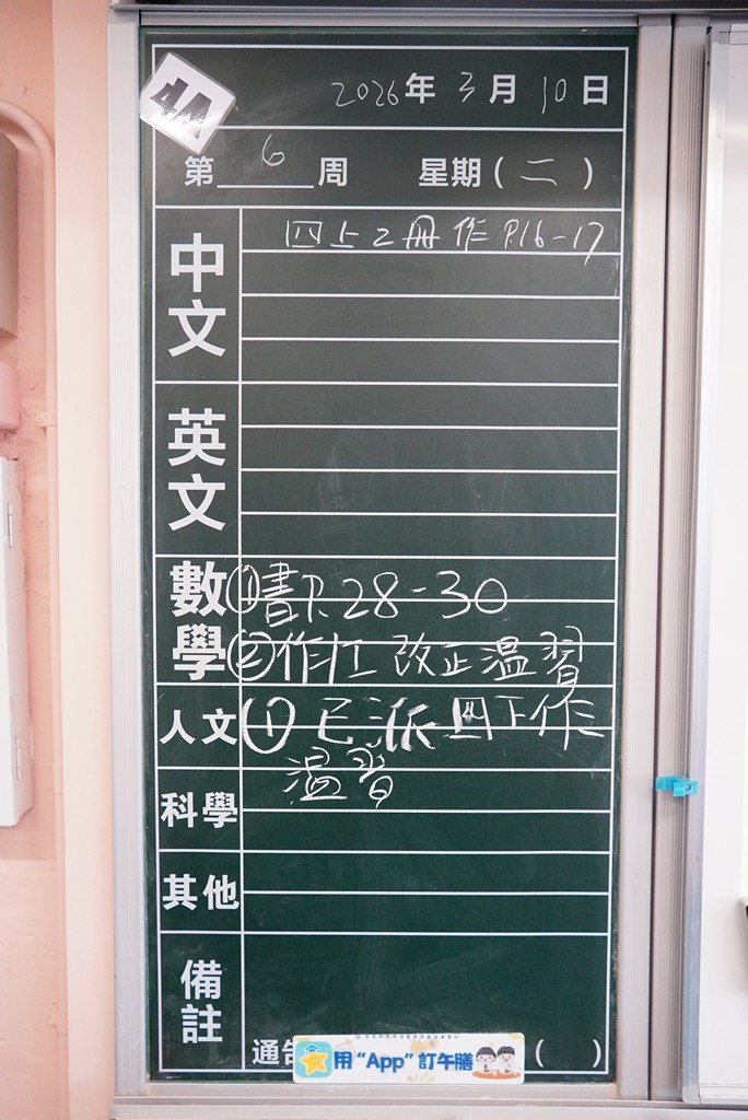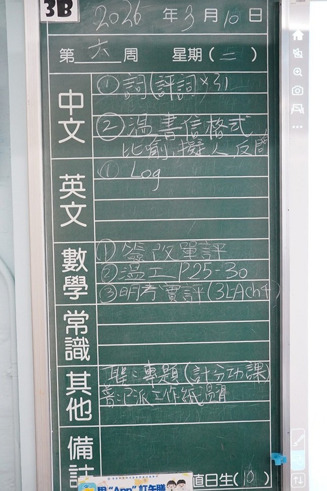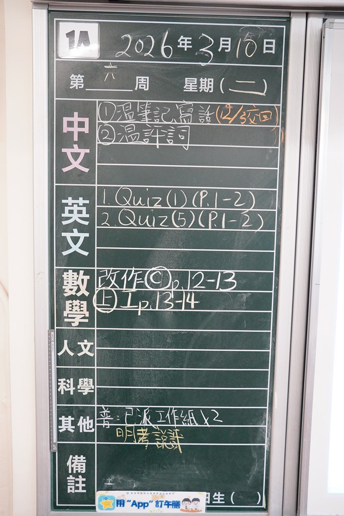 * 注意 :網上家課日誌只供參考,家課內容以上課時老師所述為準,同學應養成即時填寫手冊的習慣 *