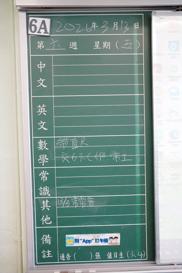 * 注意 :網上家課日誌只供參考,家課內容以上課時老師所述為準,同學應養成即時填寫手冊的習慣 *