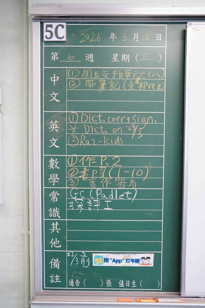 * 注意 :網上家課日誌只供參考,家課內容以上課時老師所述為準,同學應養成即時填寫手冊的習慣 *