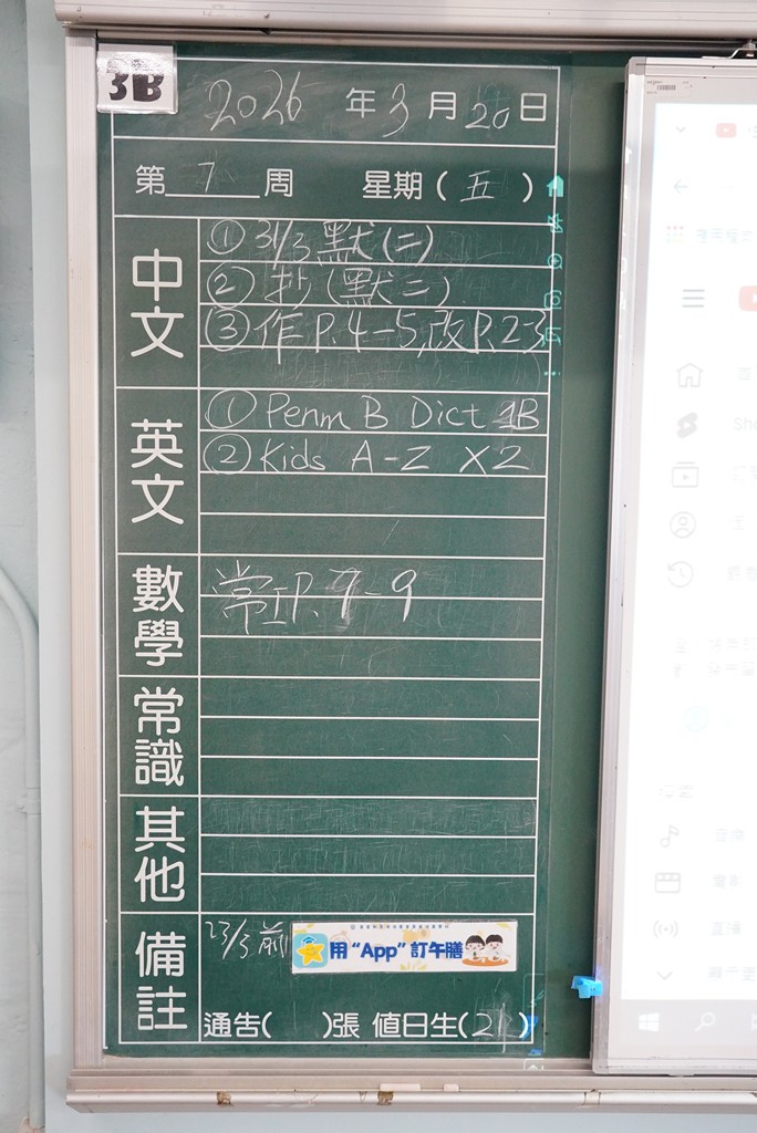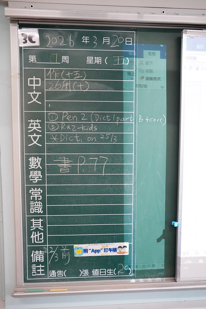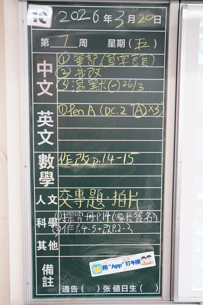 * 注意 :網上家課日誌只供參考,家課內容以上課時老師所述為準,同學應養成即時填寫手冊的習慣 *