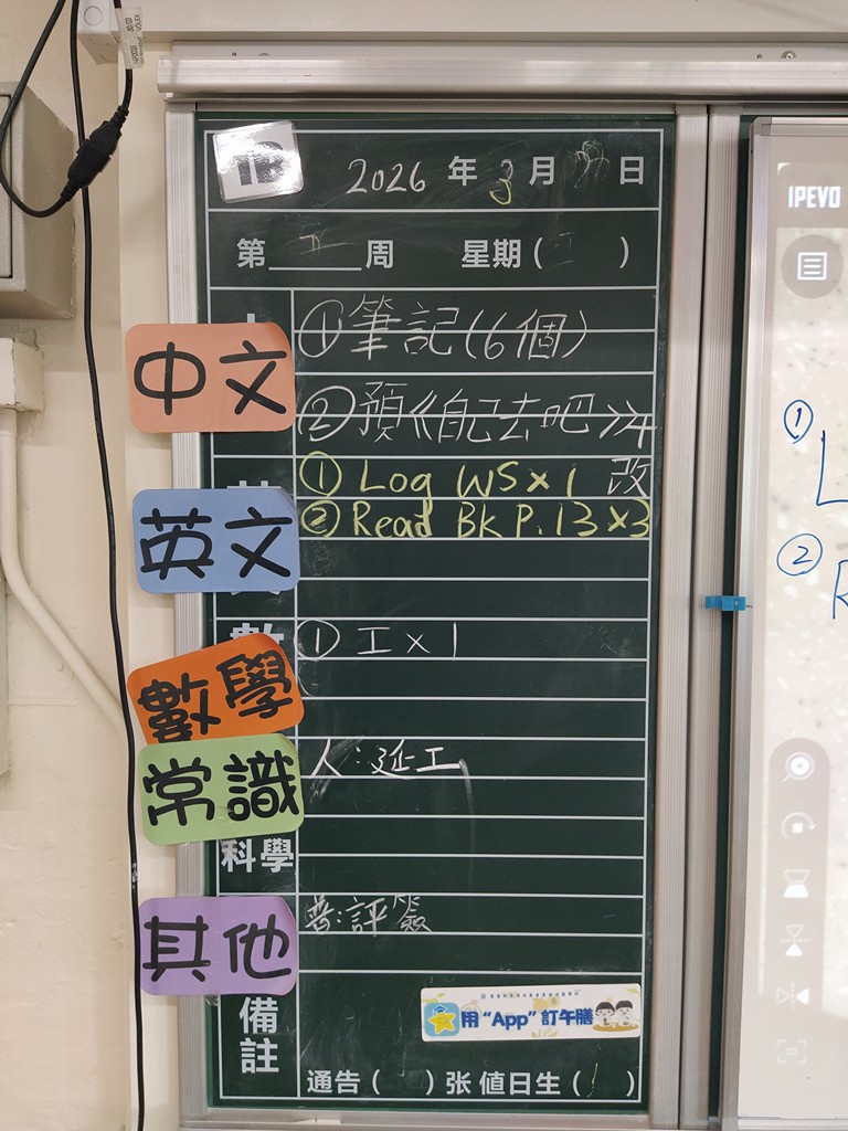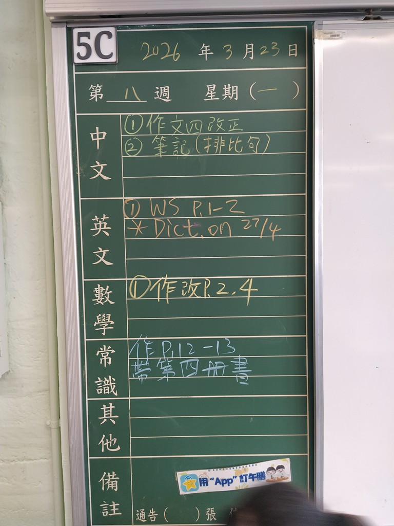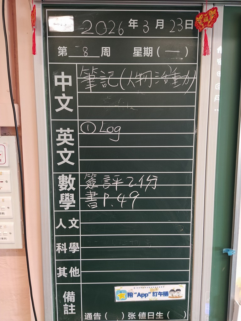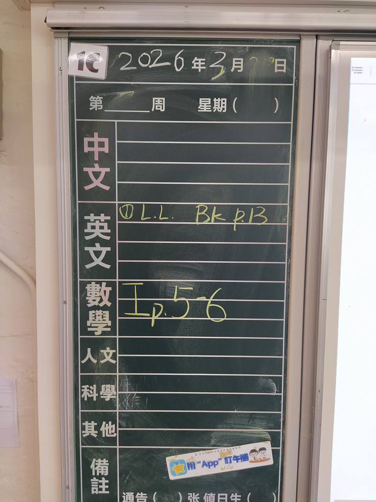 * 注意 :網上家課日誌只供參考,家課內容以上課時老師所述為準,同學應養成即時填寫手冊的習慣 *