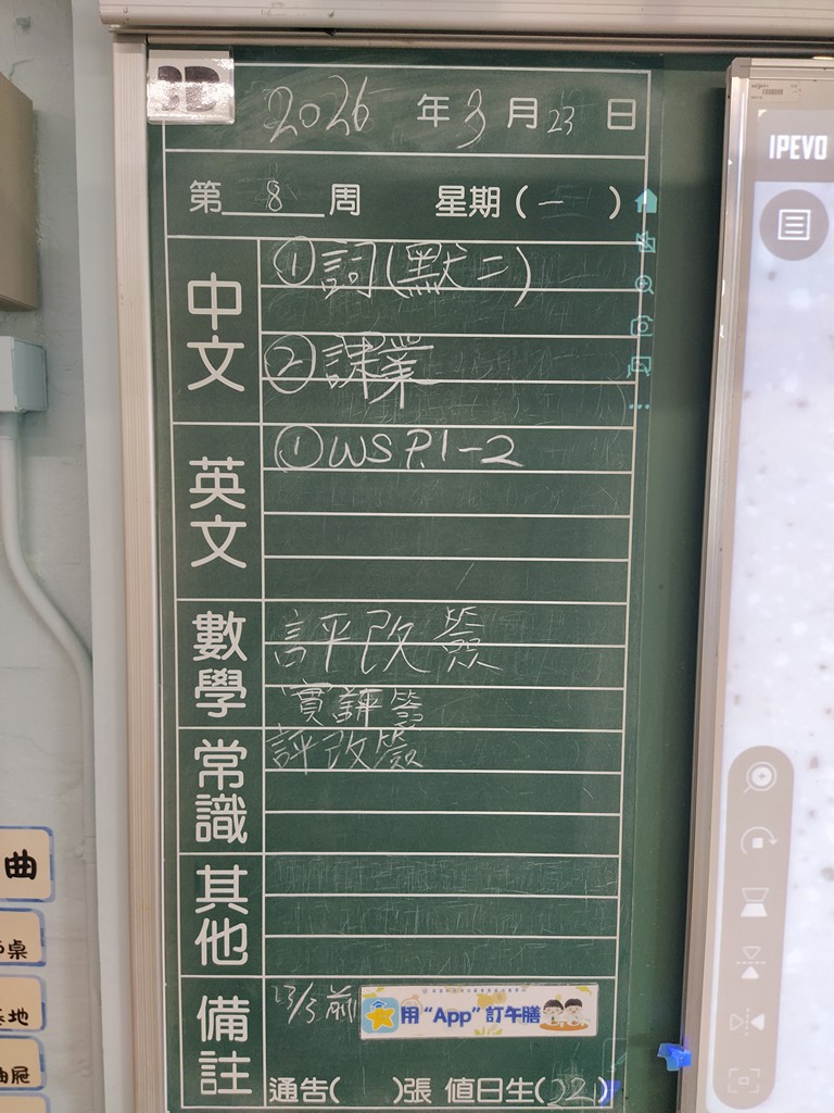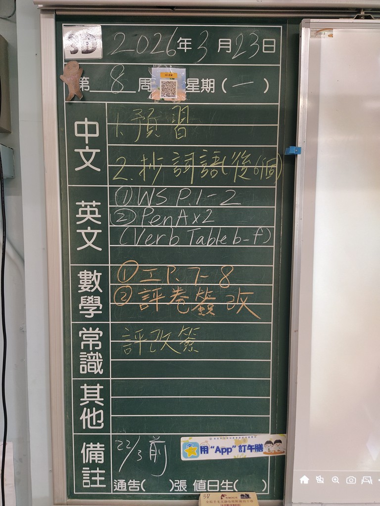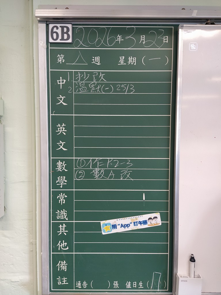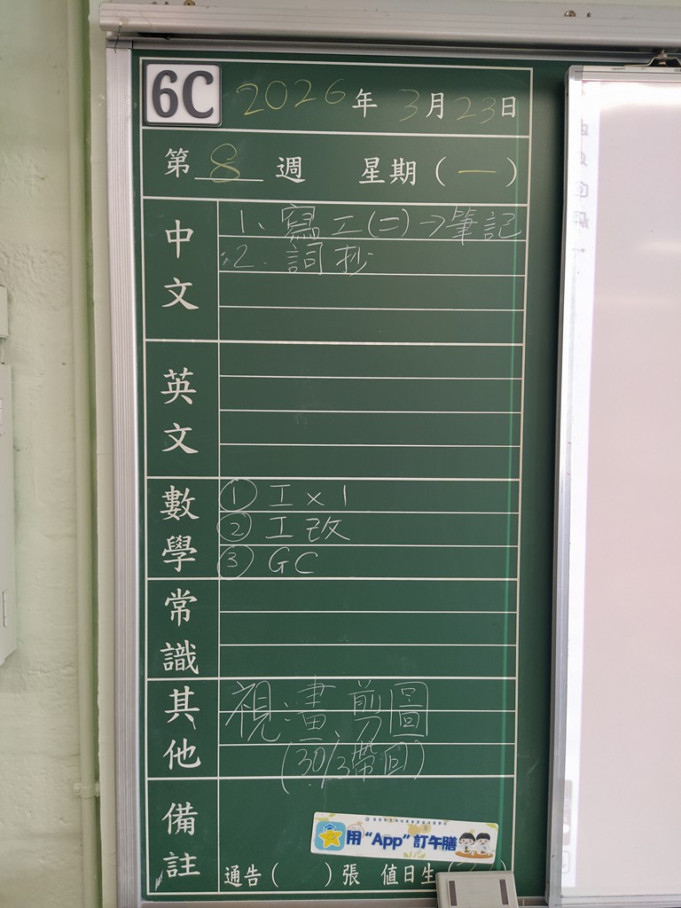 * 注意 :網上家課日誌只供參考,家課內容以上課時老師所述為準,同學應養成即時填寫手冊的習慣 *