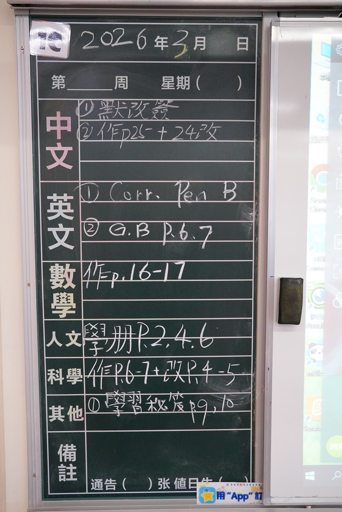 * 注意 :網上家課日誌只供參考,家課內容以上課時老師所述為準,同學應養成即時填寫手冊的習慣 *