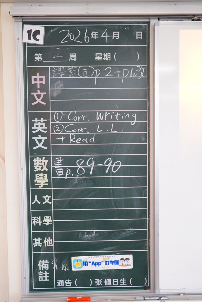 * 注意 :網上家課日誌只供參考,家課內容以上課時老師所述為準,同學應養成即時填寫手冊的習慣 *