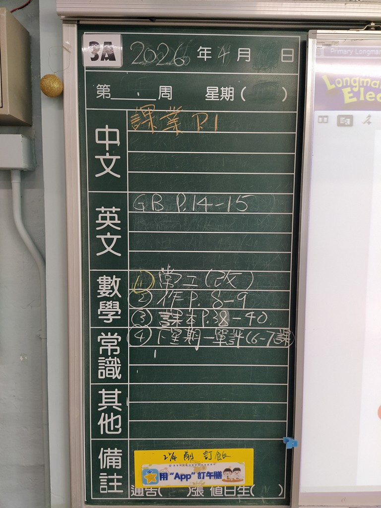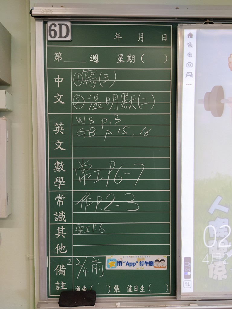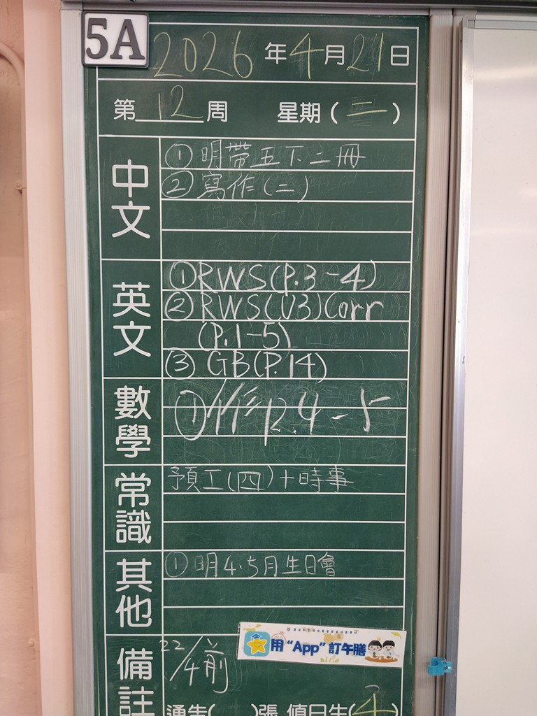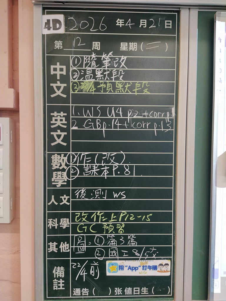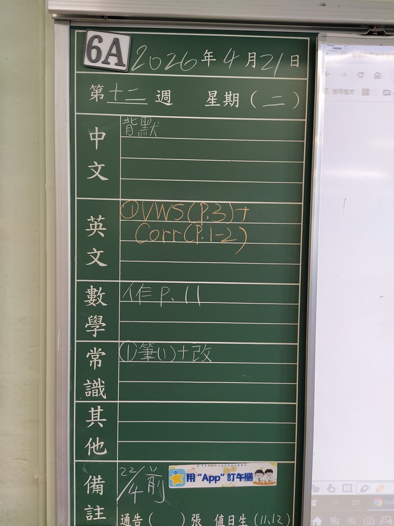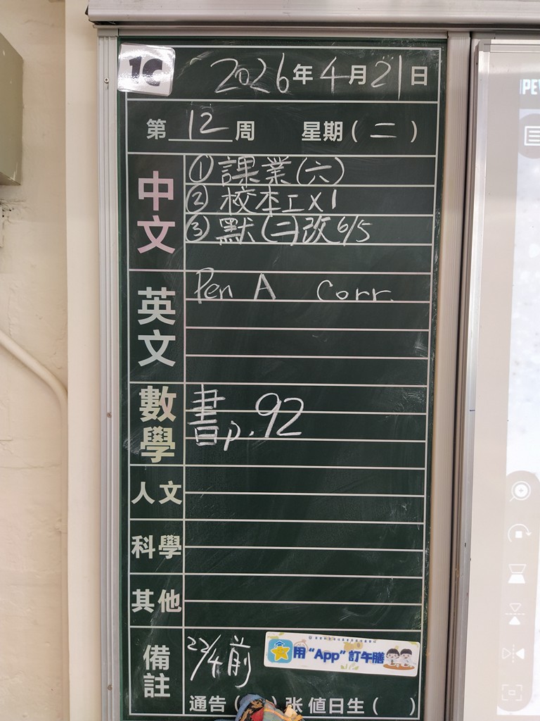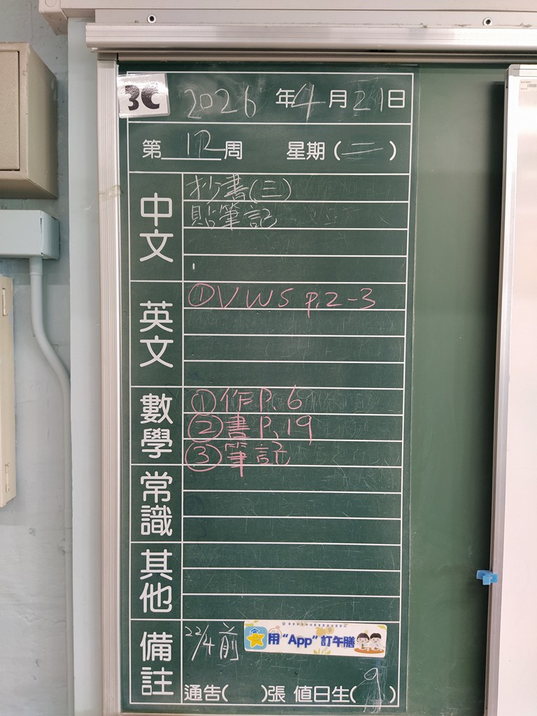 * 注意 :網上家課日誌只供參考,家課內容以上課時老師所述為準,同學應養成即時填寫手冊的習慣 *