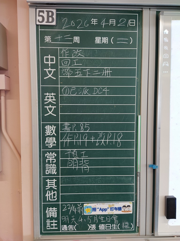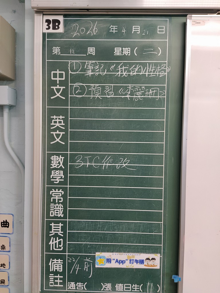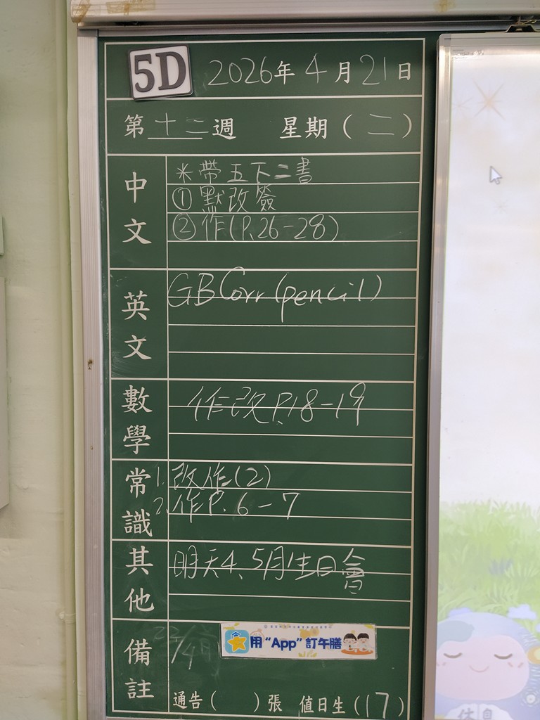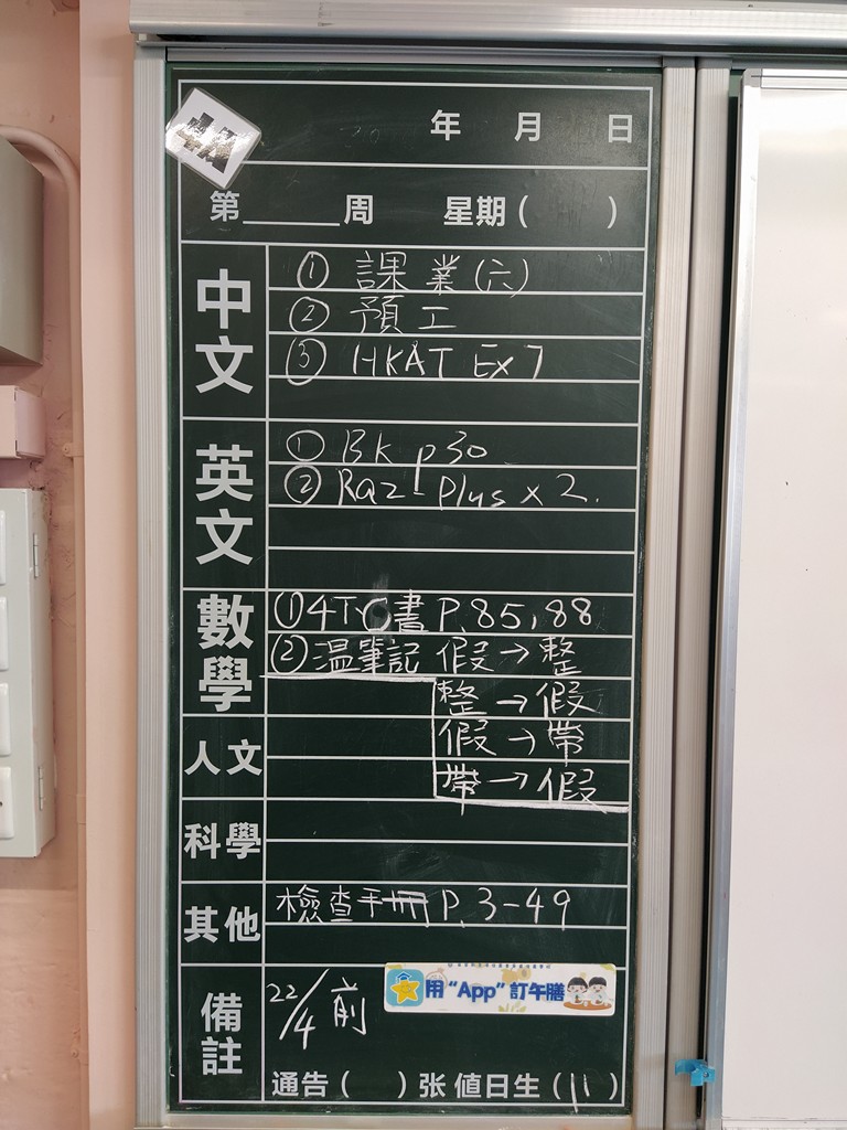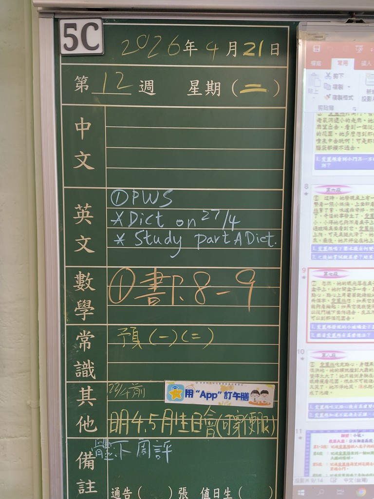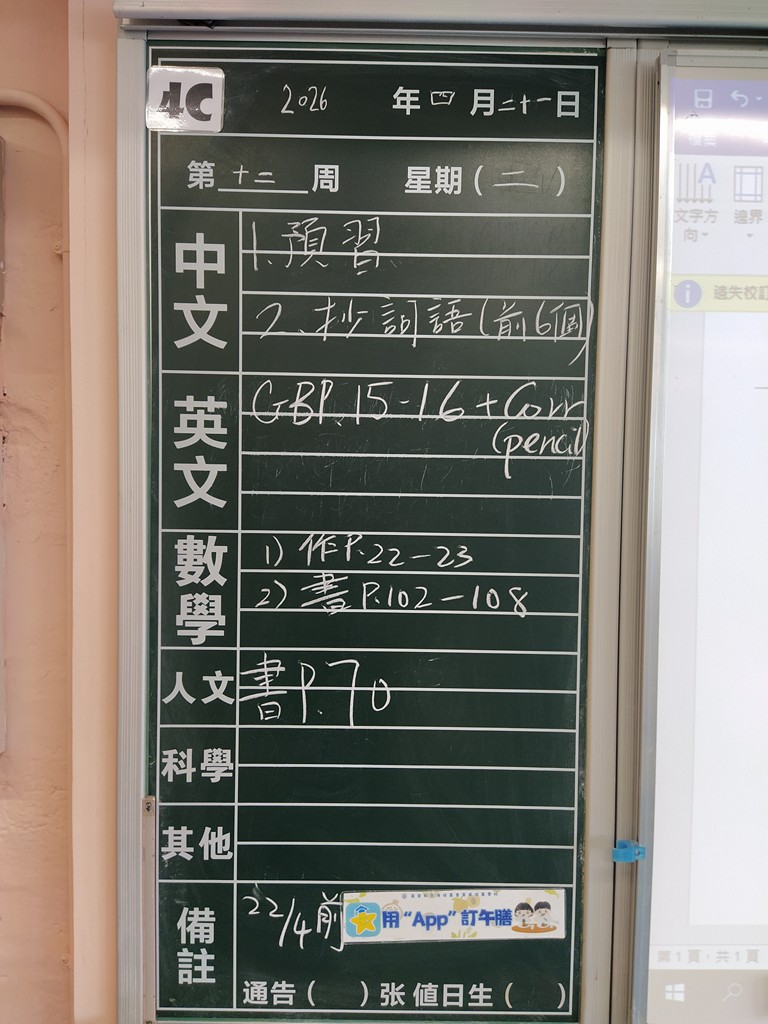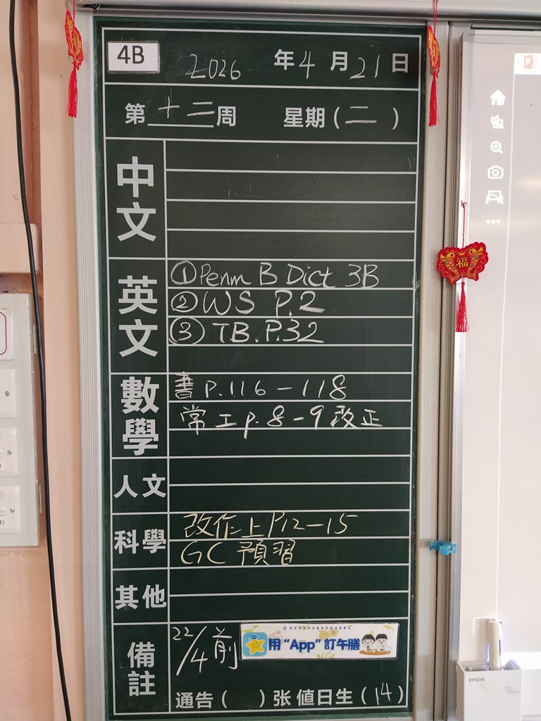 * 注意 :網上家課日誌只供參考,家課內容以上課時老師所述為準,同學應養成即時填寫手冊的習慣 *