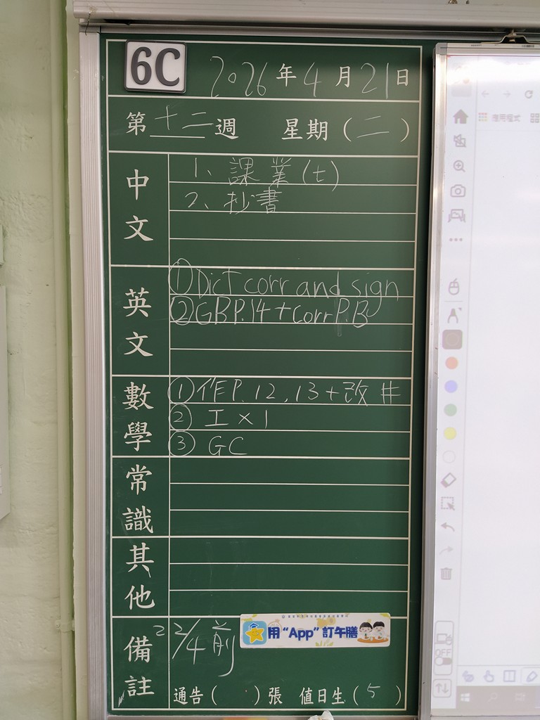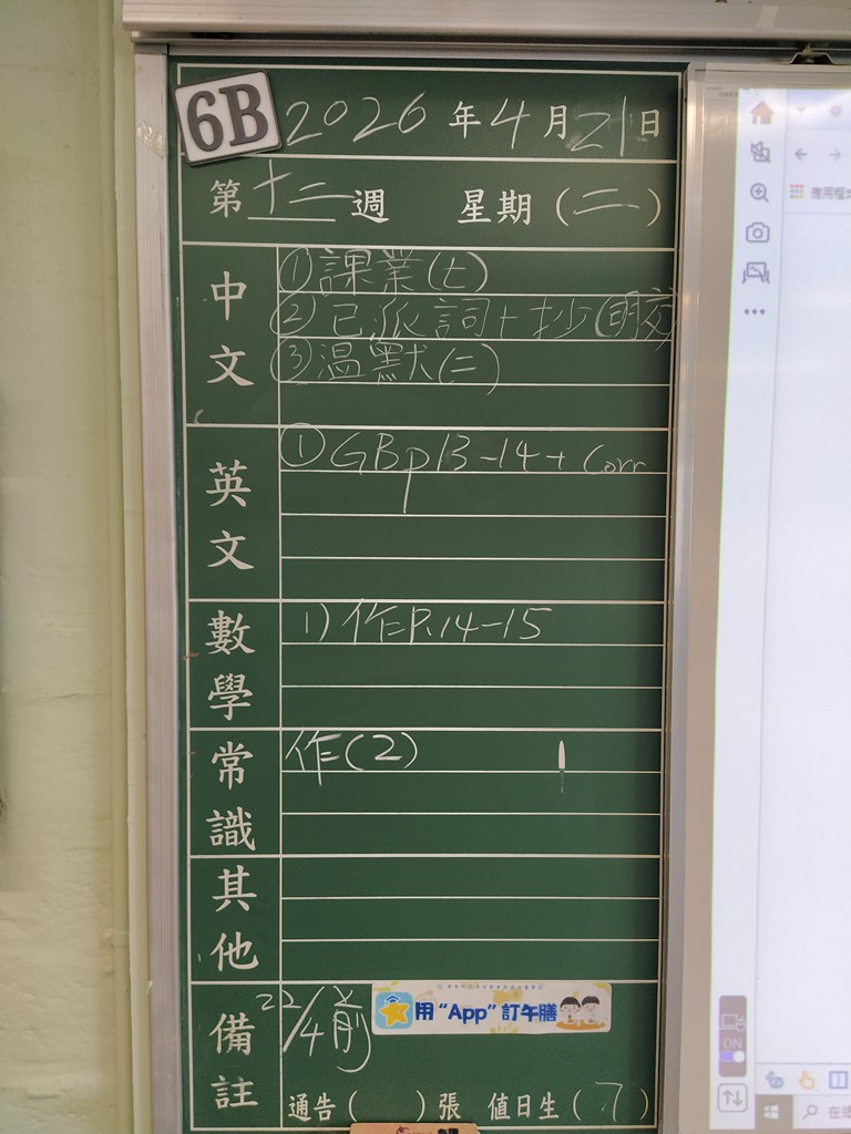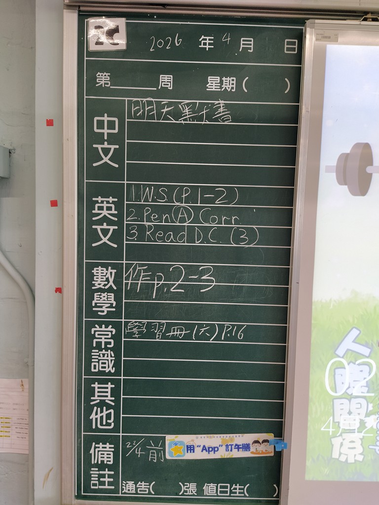 一至六年級家課