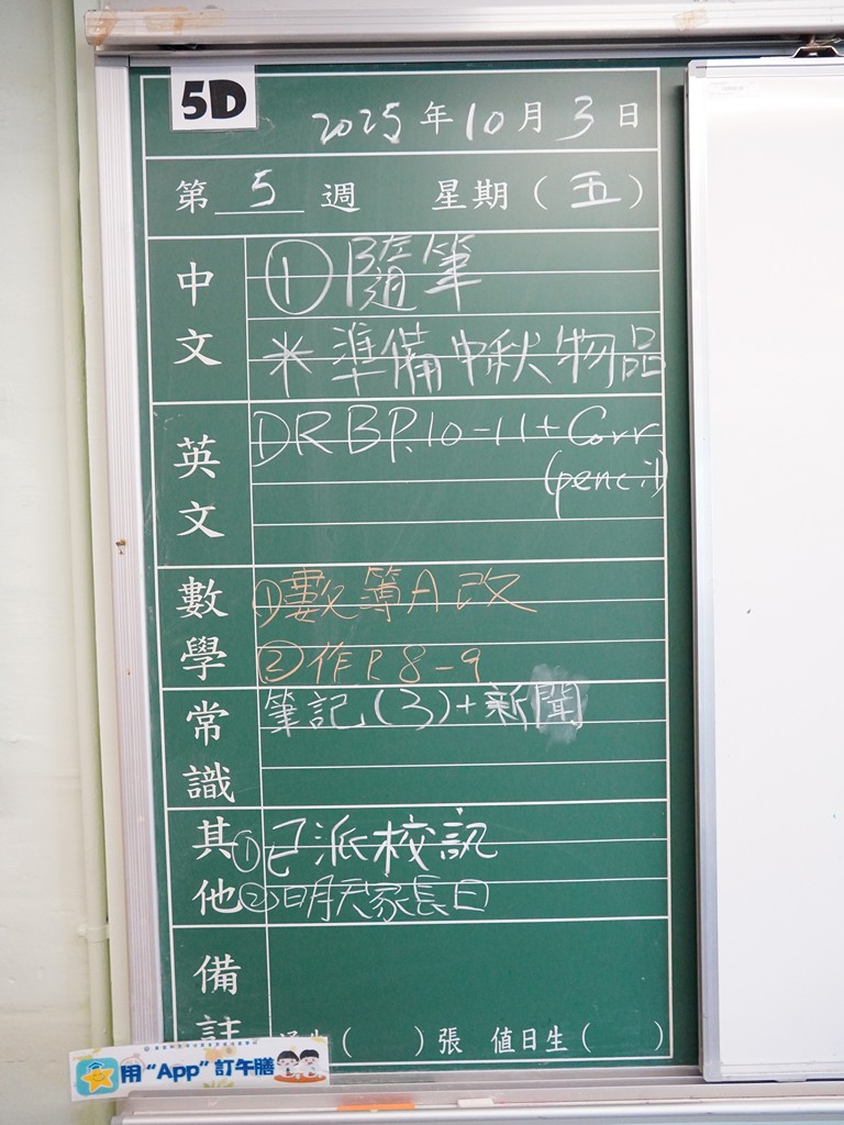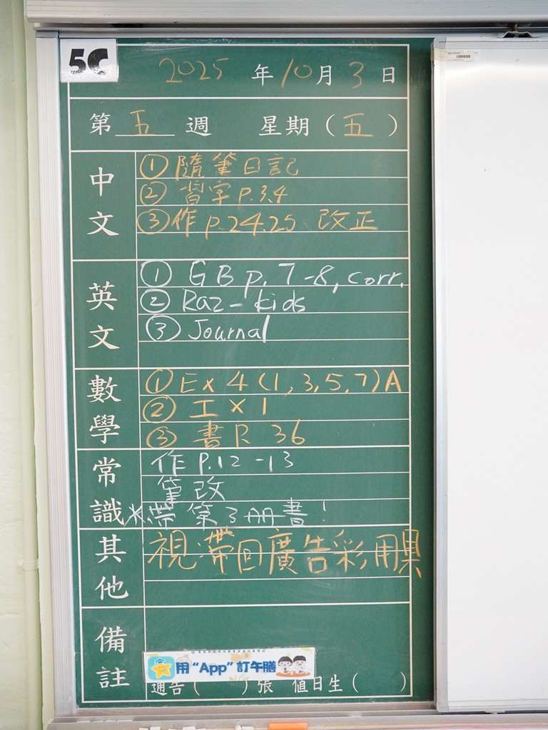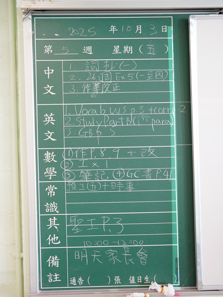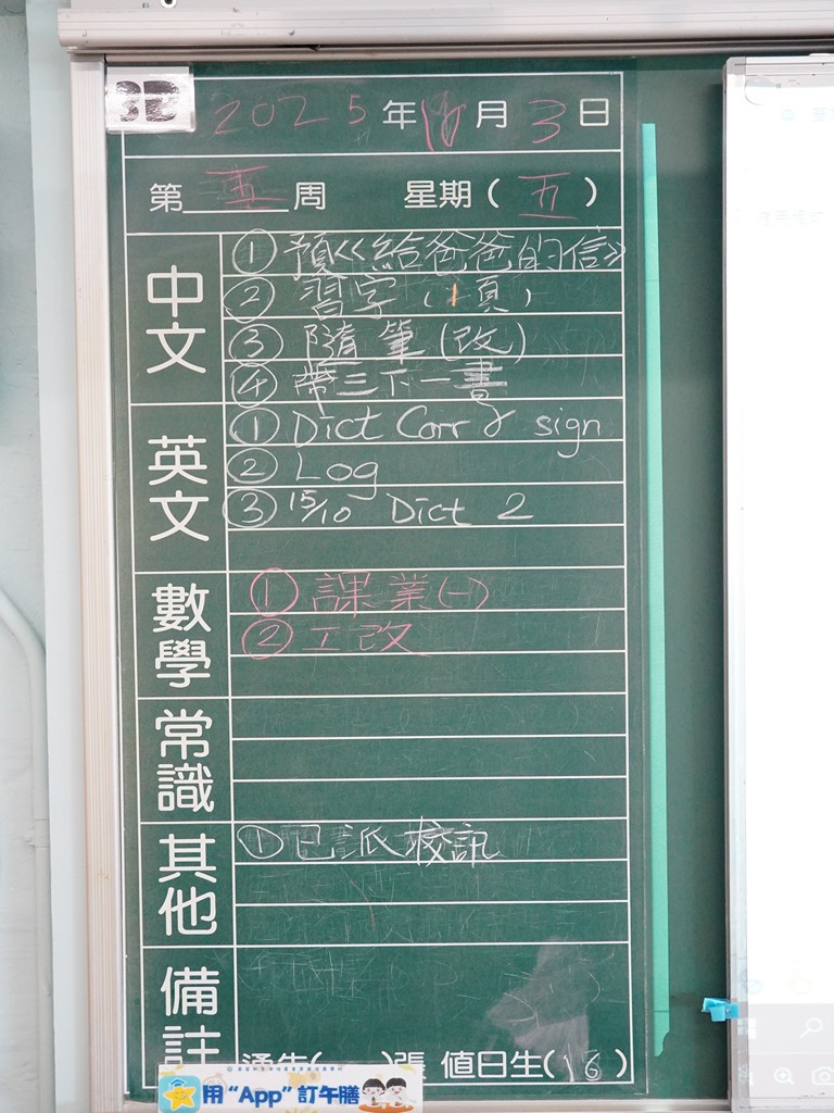 * 注意 :網上家課日誌只供參考,家課內容以上課時老師所述為準,同學應養成即時填寫手冊的習慣 *