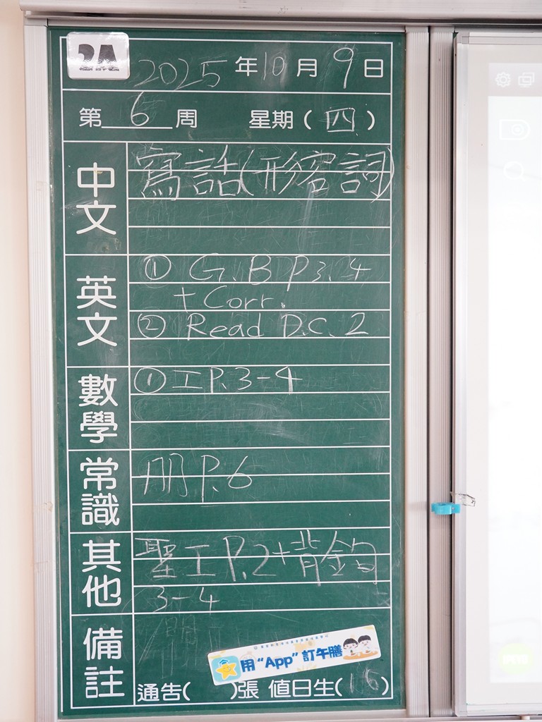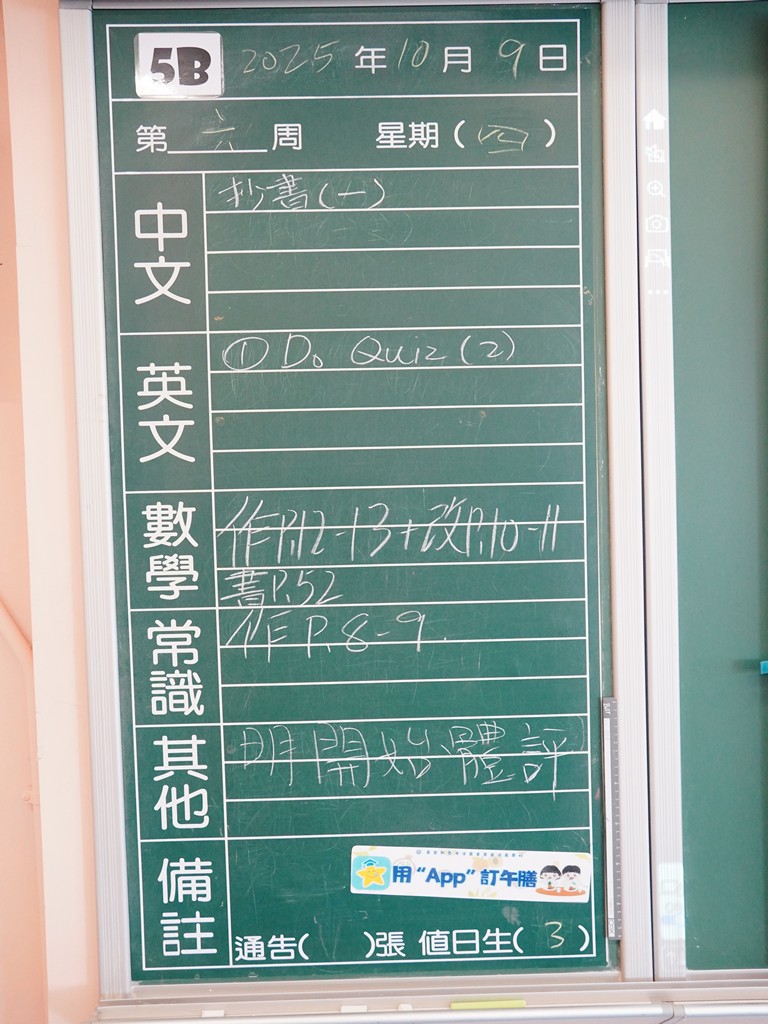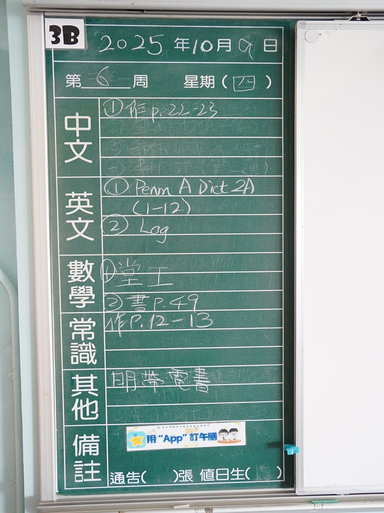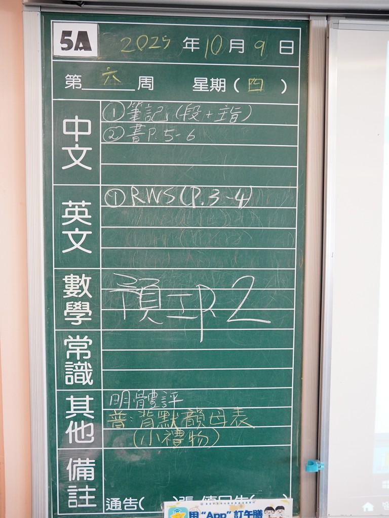 * 注意 :網上家課日誌只供參考,家課內容以上課時老師所述為準,同學應養成即時填寫手冊的習慣 *