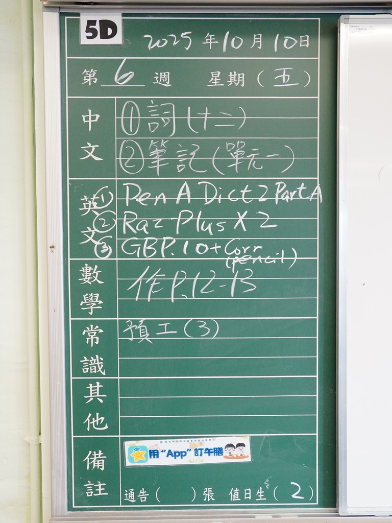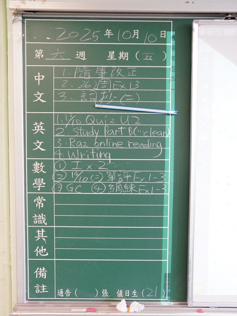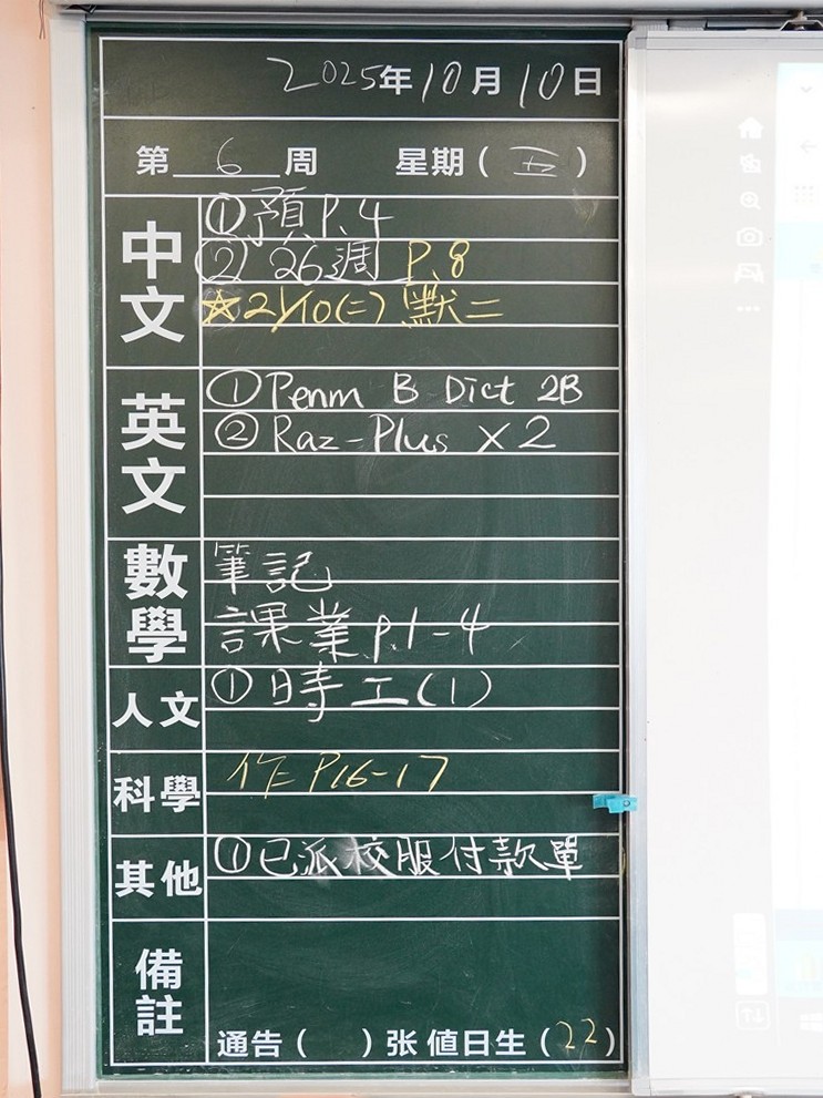 * 注意 :網上家課日誌只供參考,家課內容以上課時老師所述為準,同學應養成即時填寫手冊的習慣 *