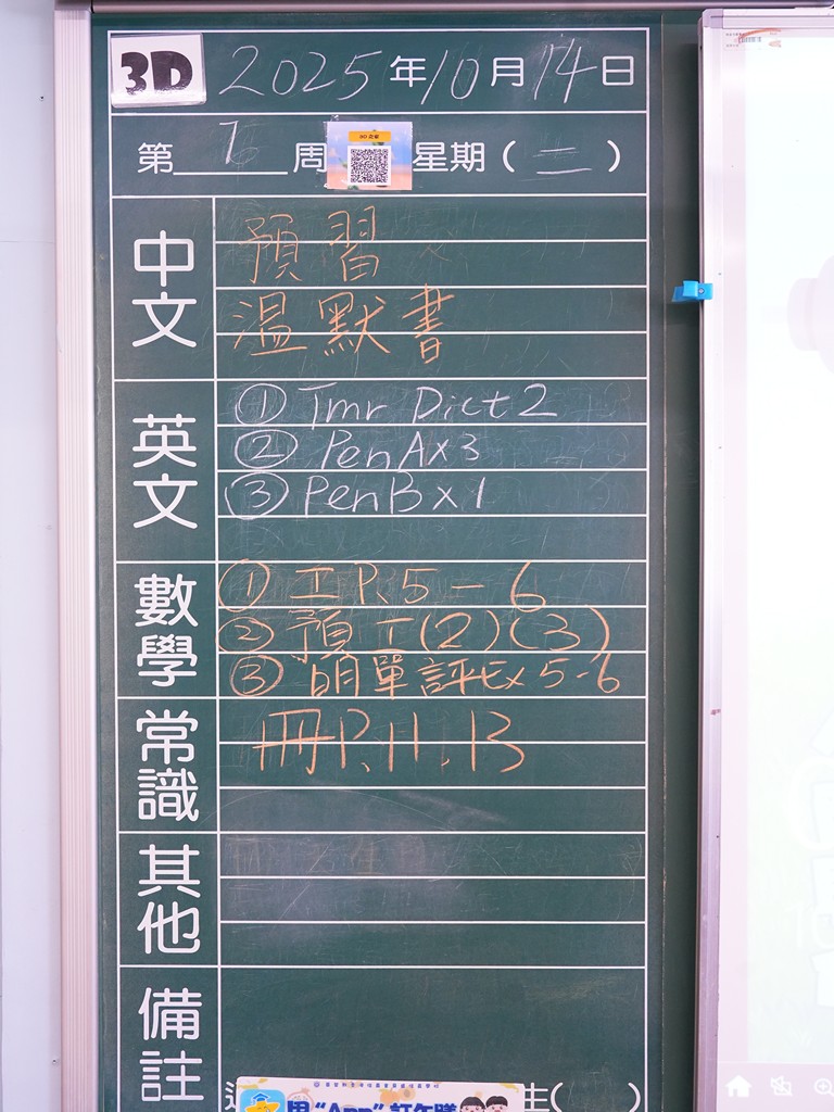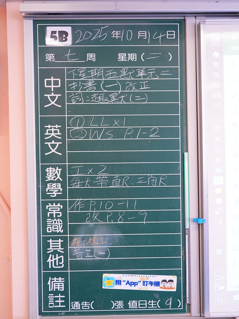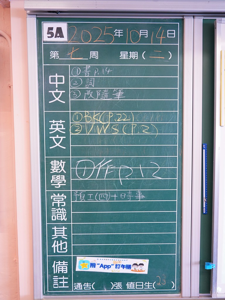 一至六年級家課