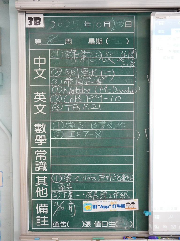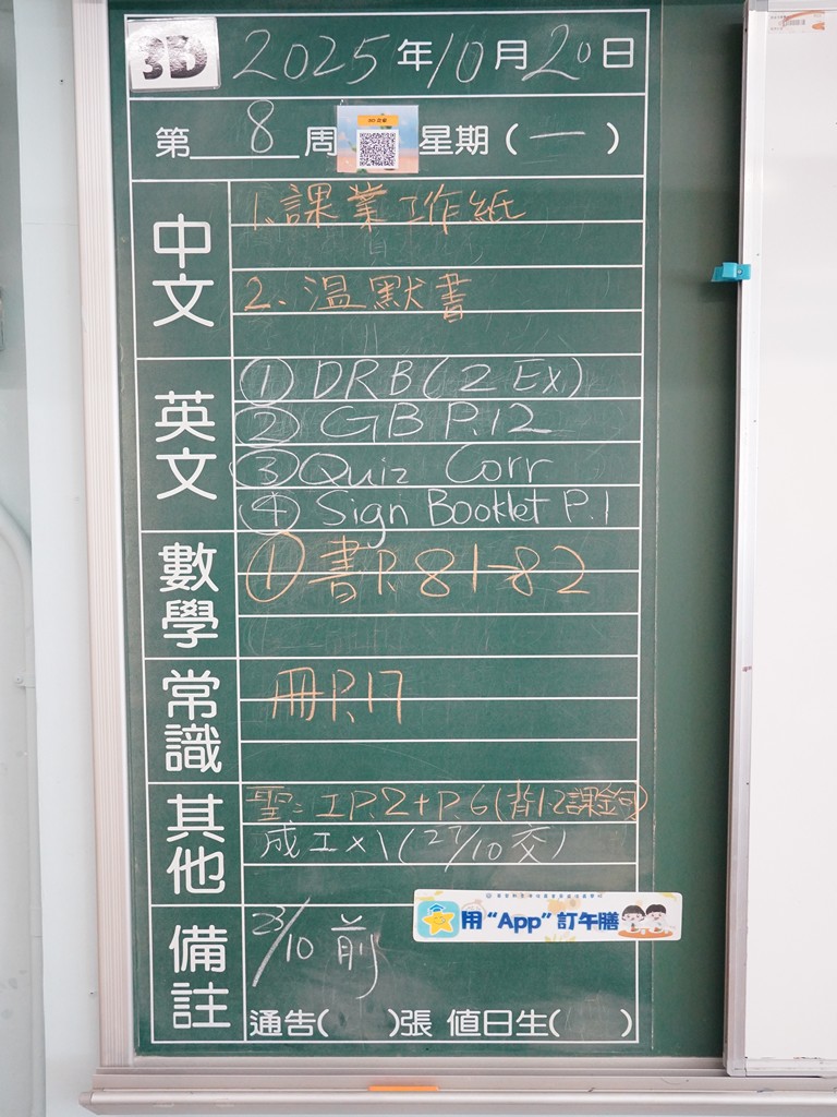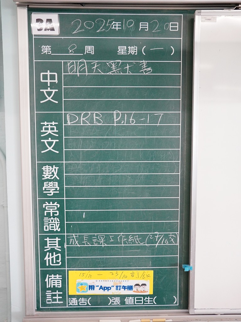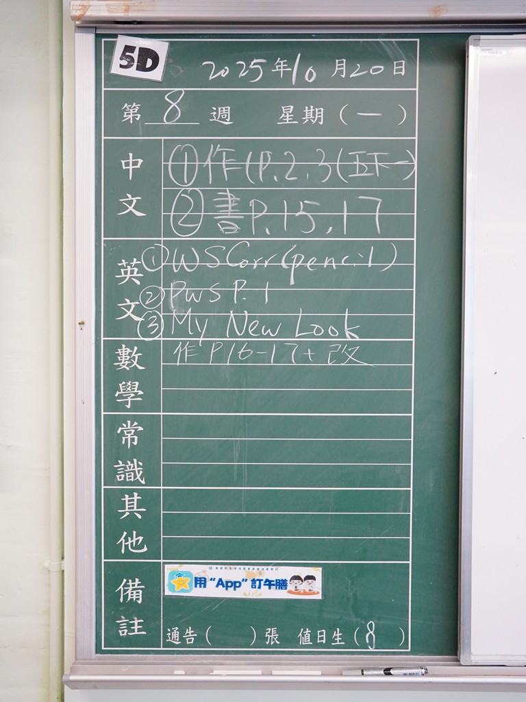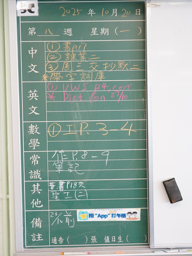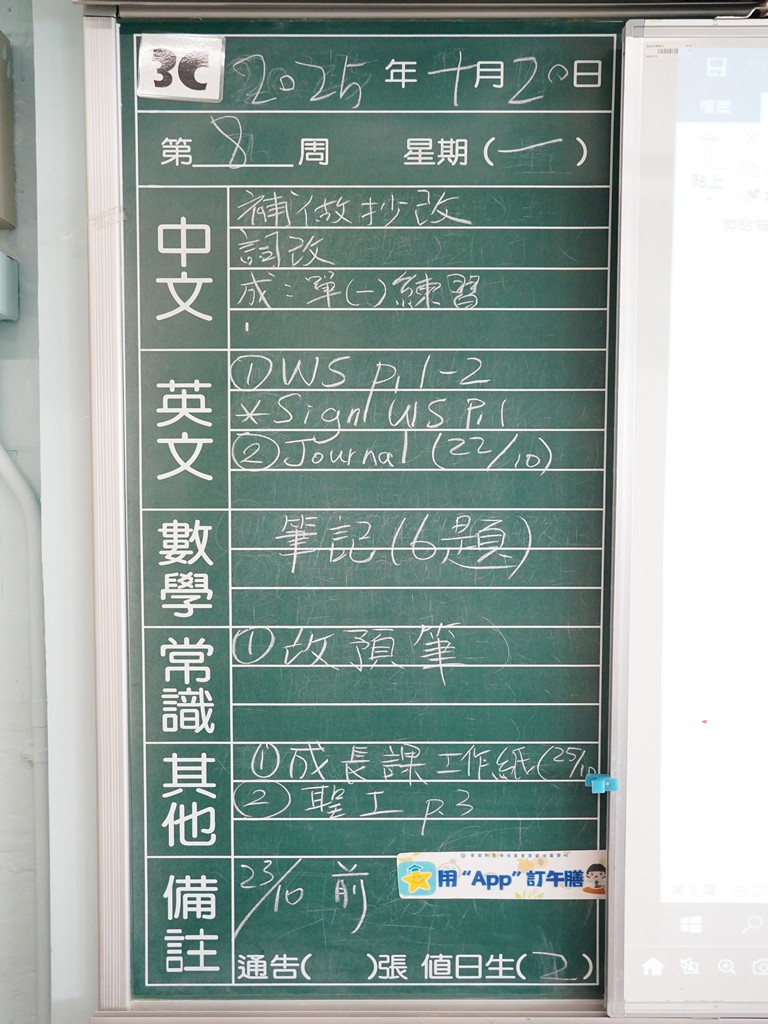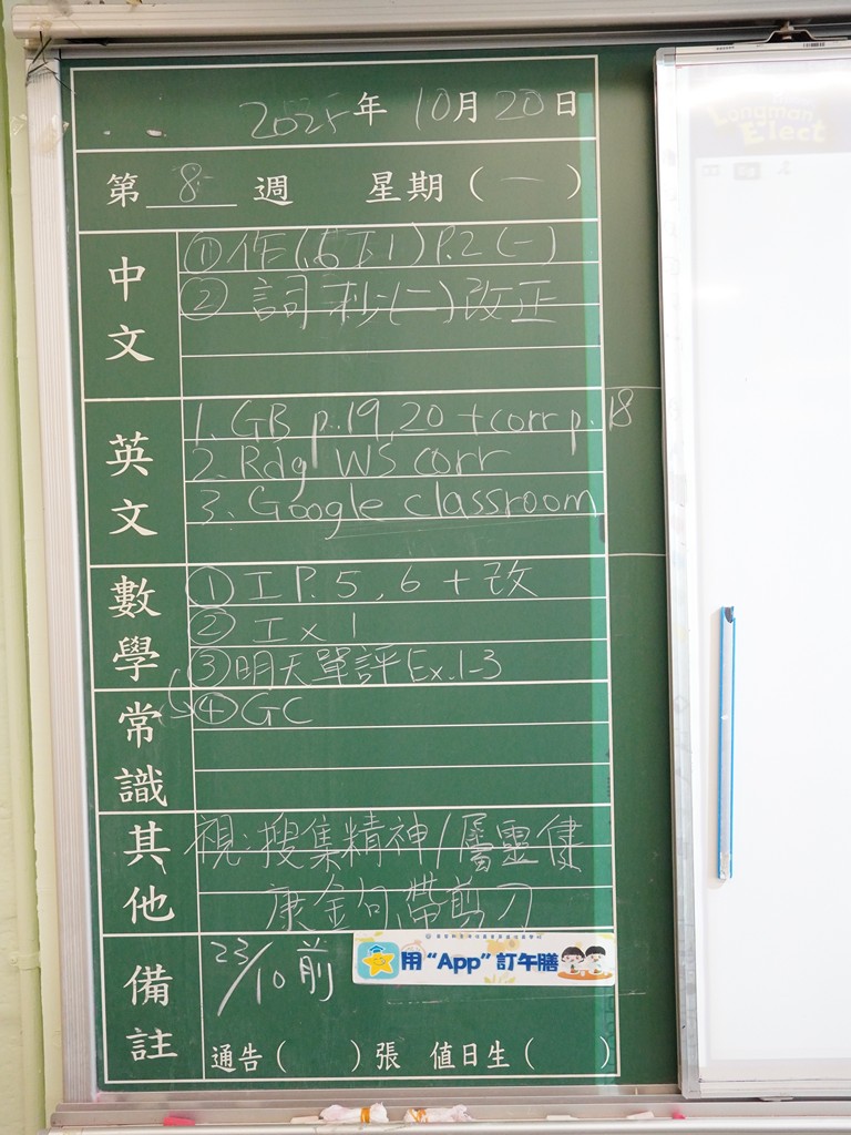 * 注意 :網上家課日誌只供參考,家課內容以上課時老師所述為準,同學應養成即時填寫手冊的習慣 *