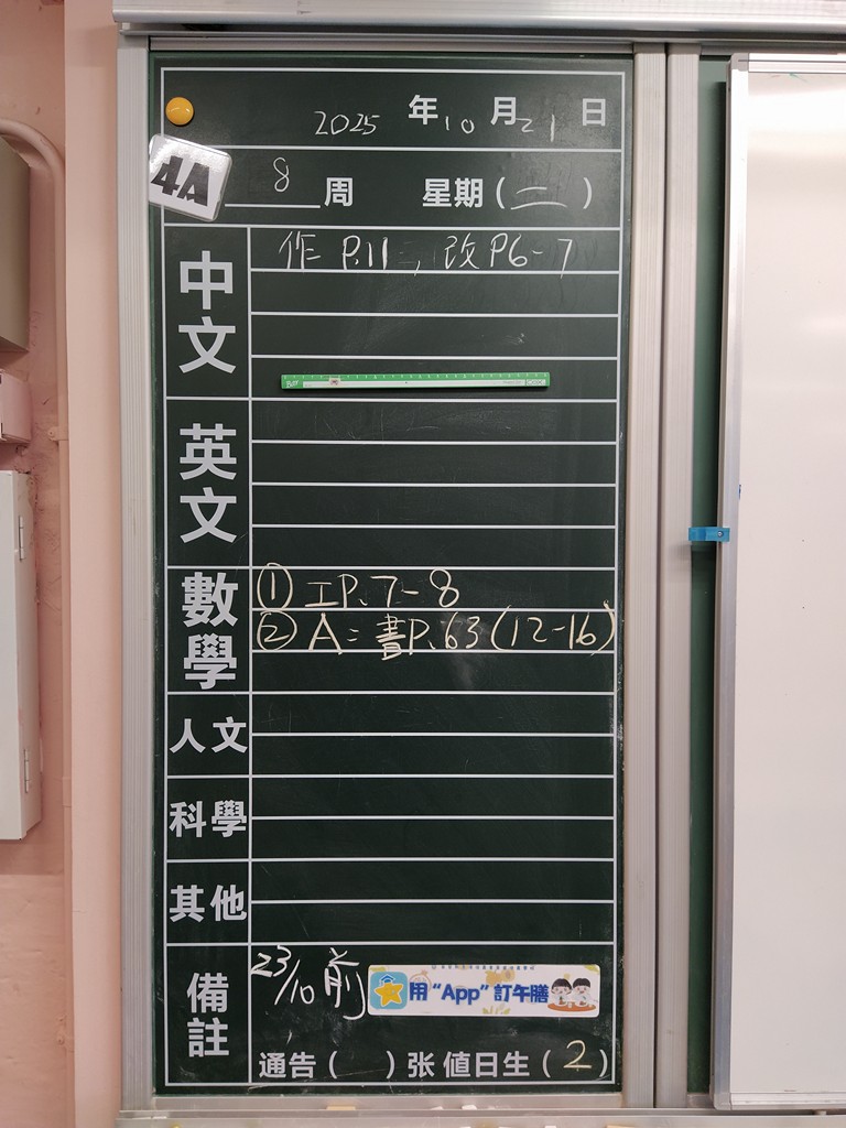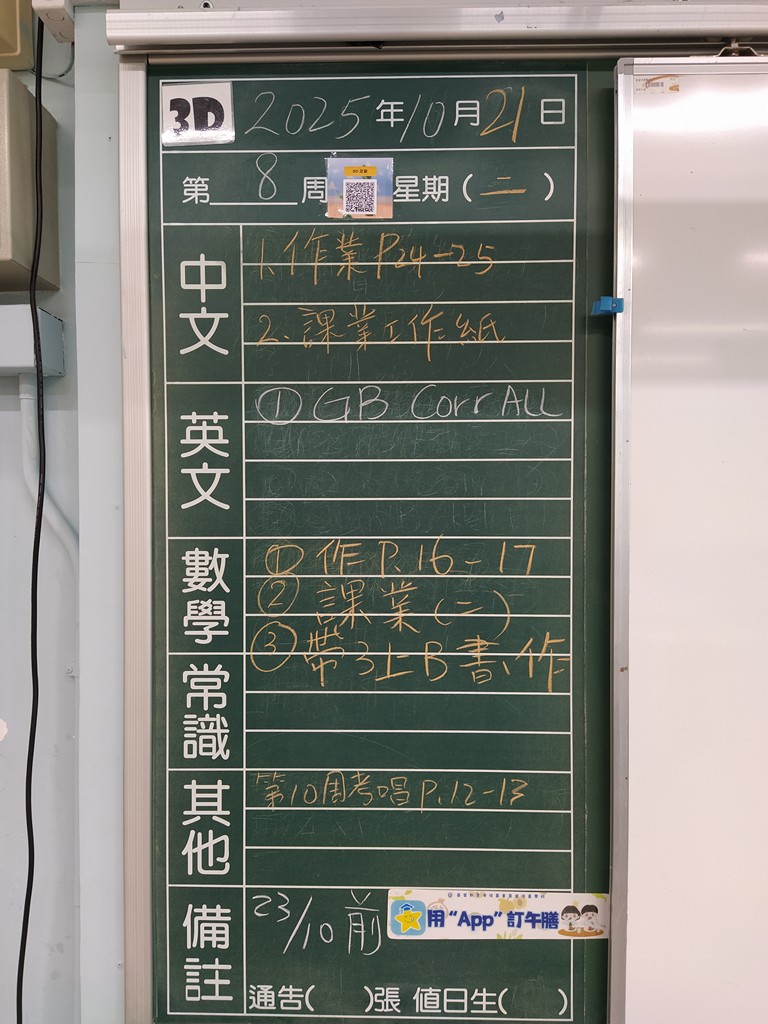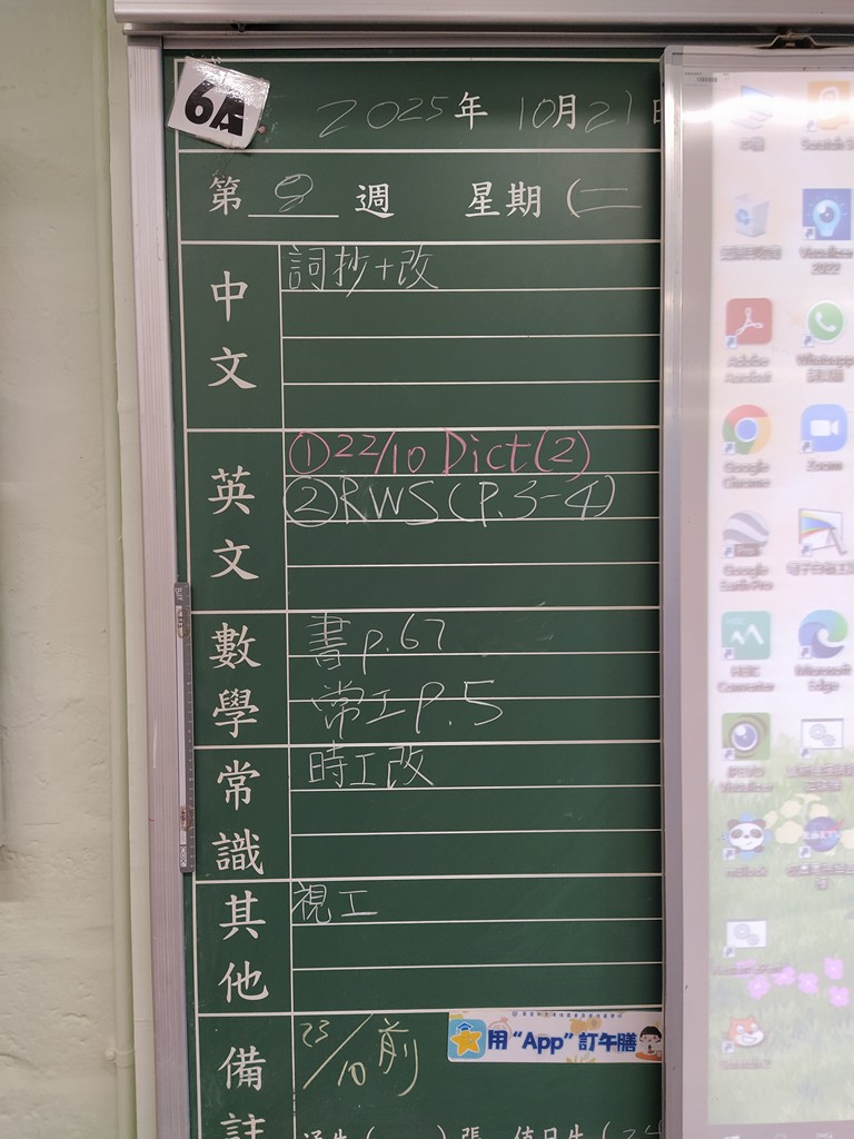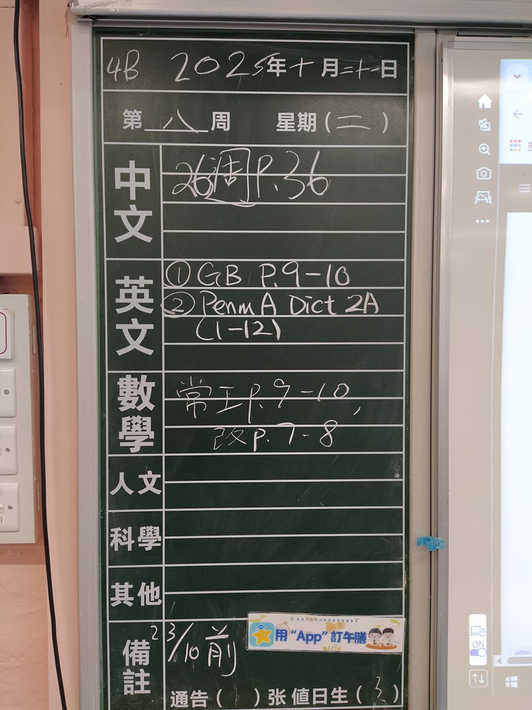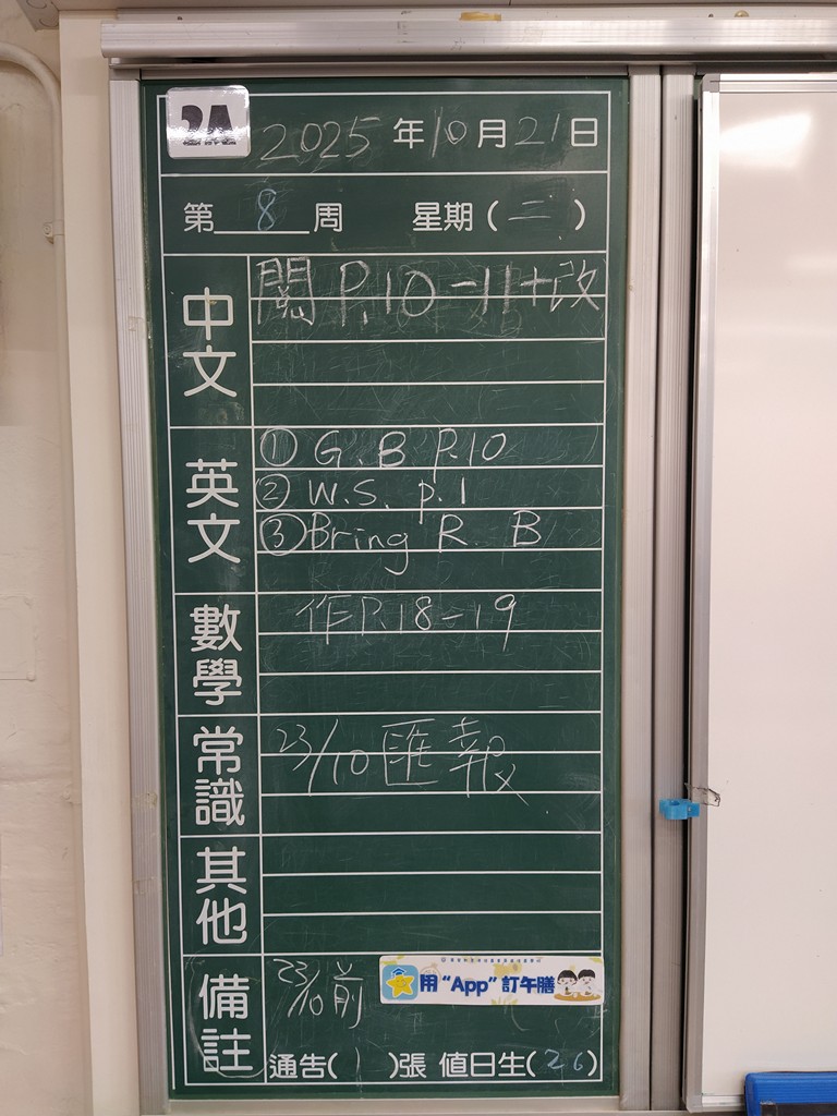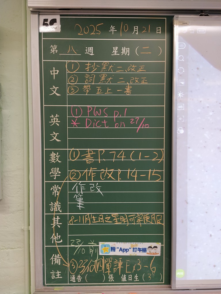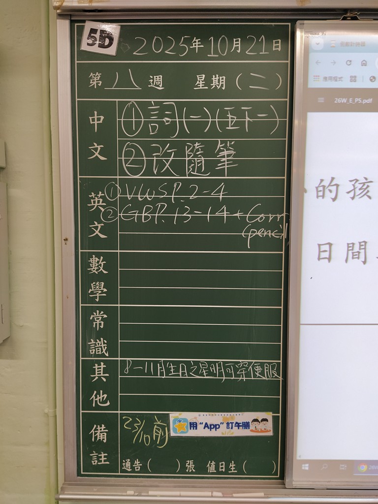 * 注意 :網上家課日誌只供參考,家課內容以上課時老師所述為準,同學應養成即時填寫手冊的習慣 *