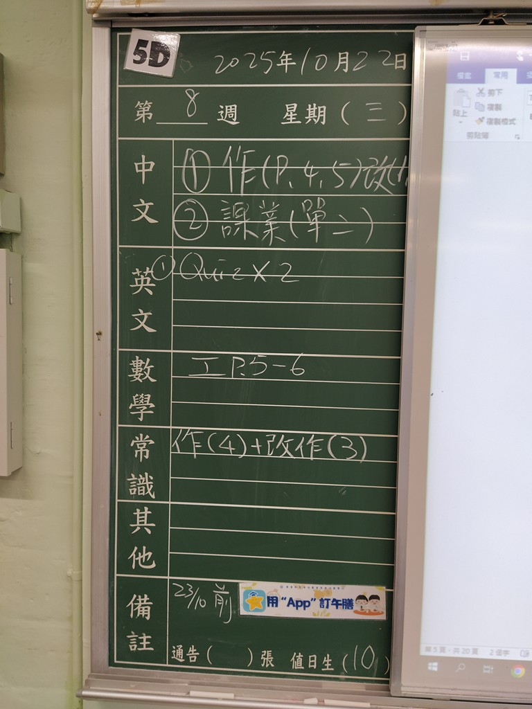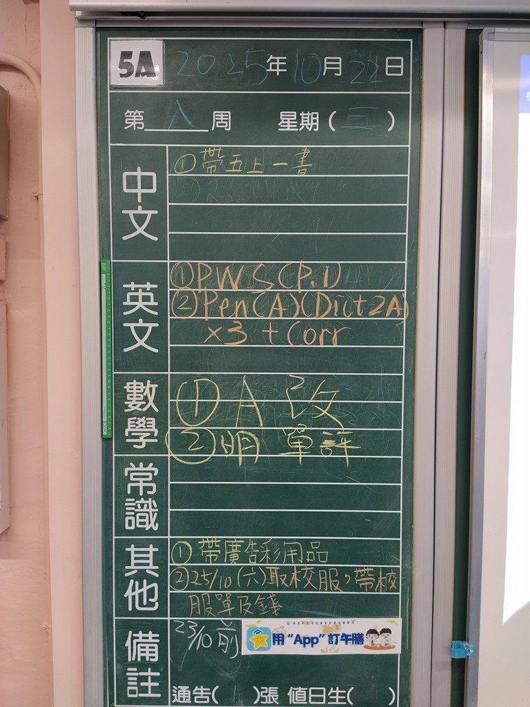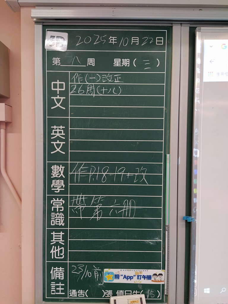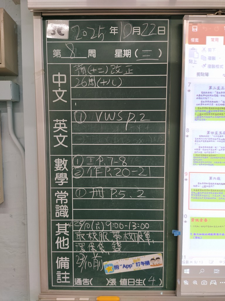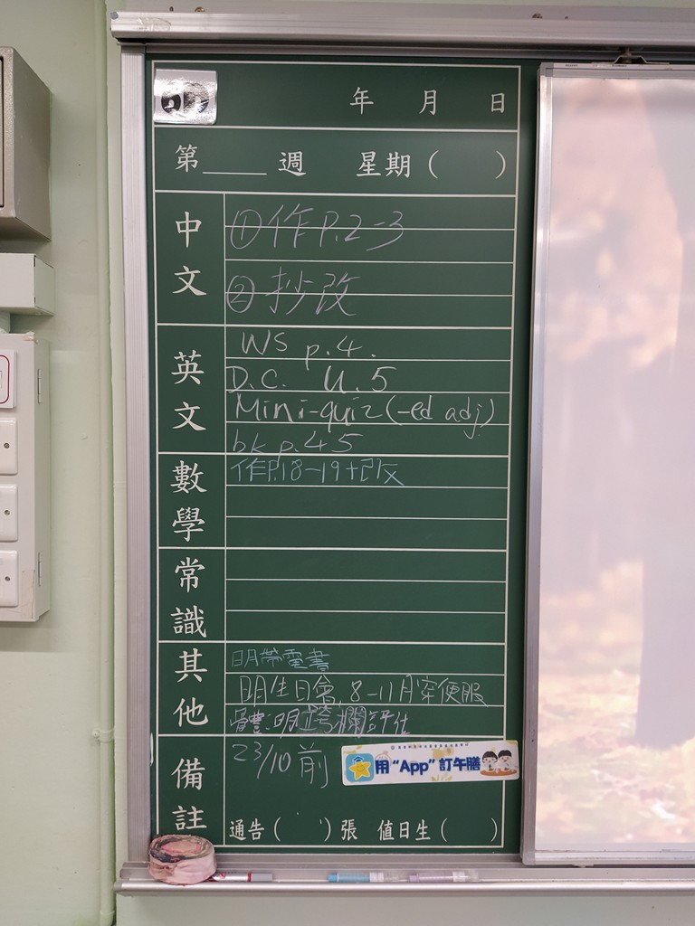 * 注意 :網上家課日誌只供參考,家課內容以上課時老師所述為準,同學應養成即時填寫手冊的習慣 *