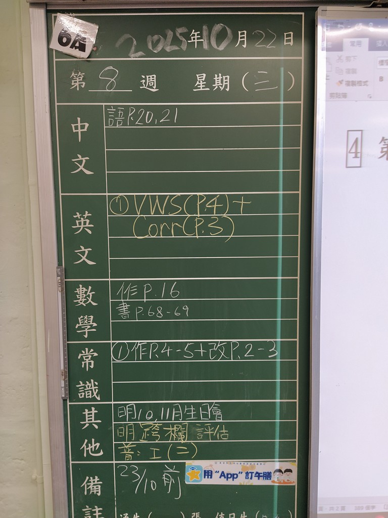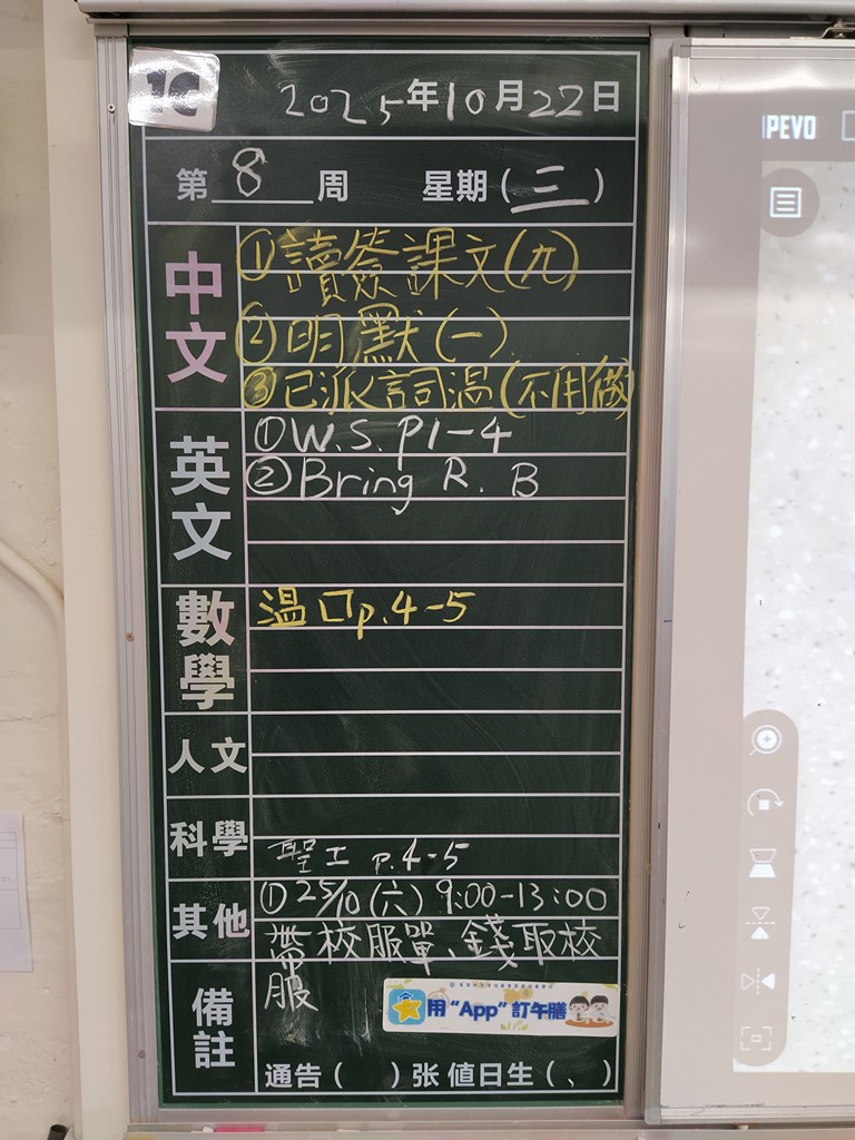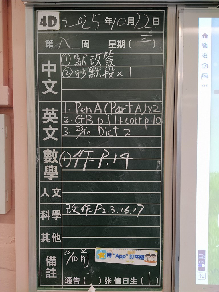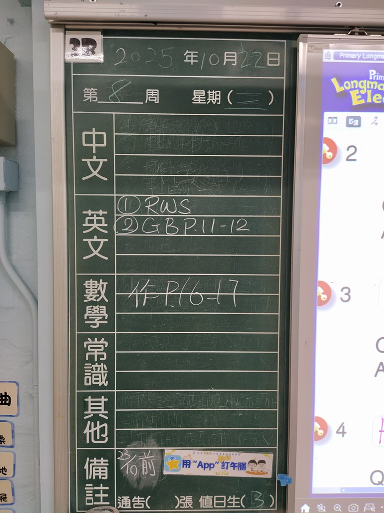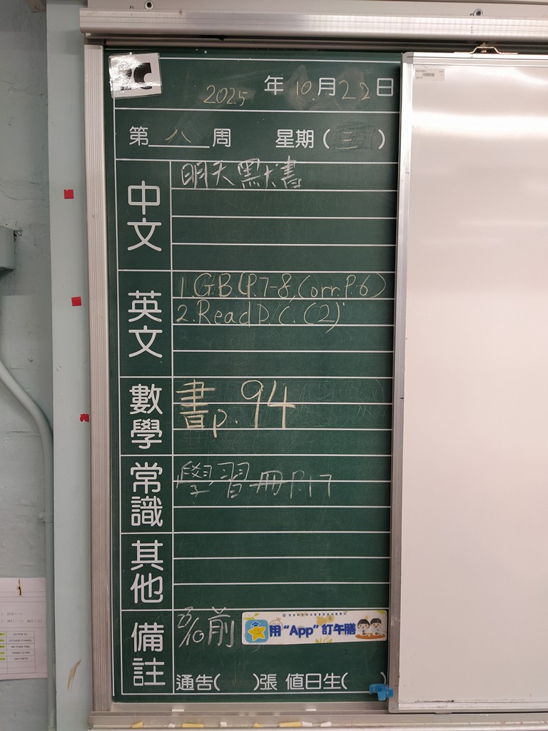 * 注意 :網上家課日誌只供參考,家課內容以上課時老師所述為準,同學應養成即時填寫手冊的習慣 *