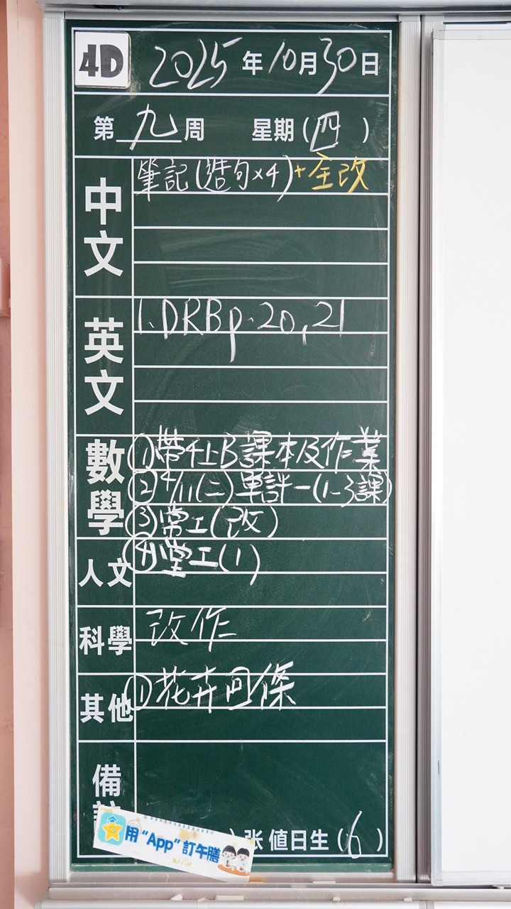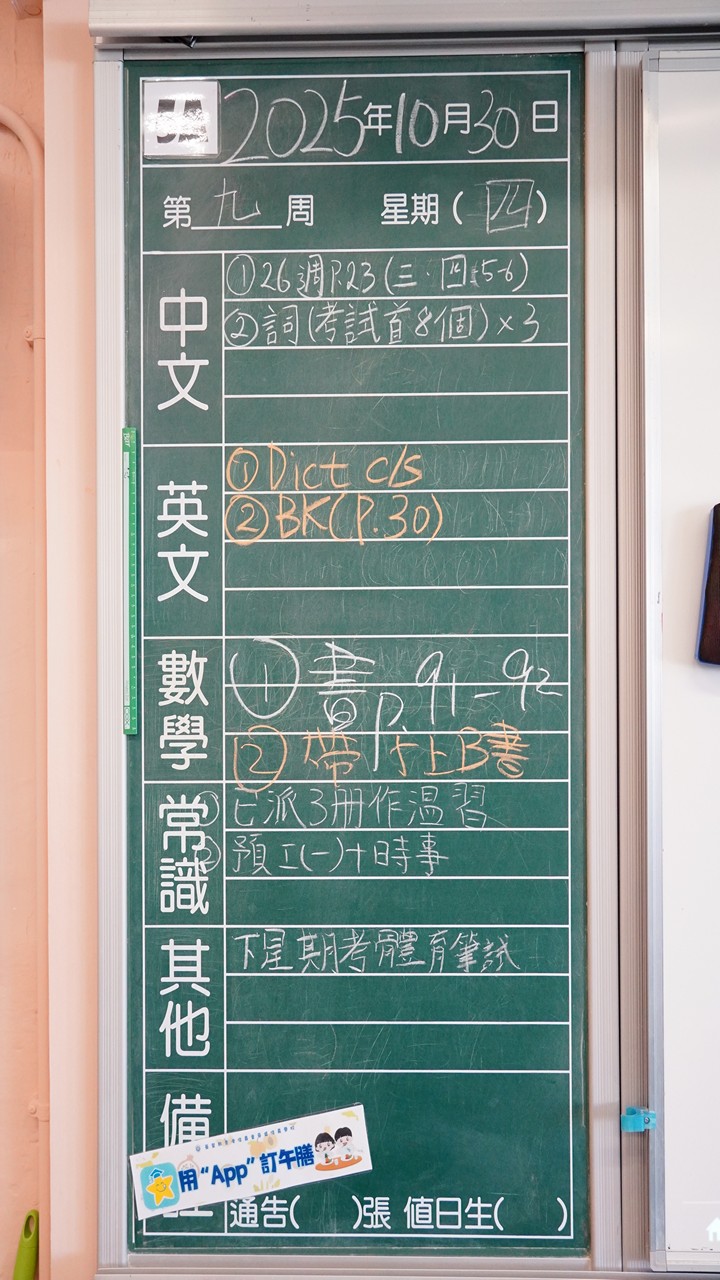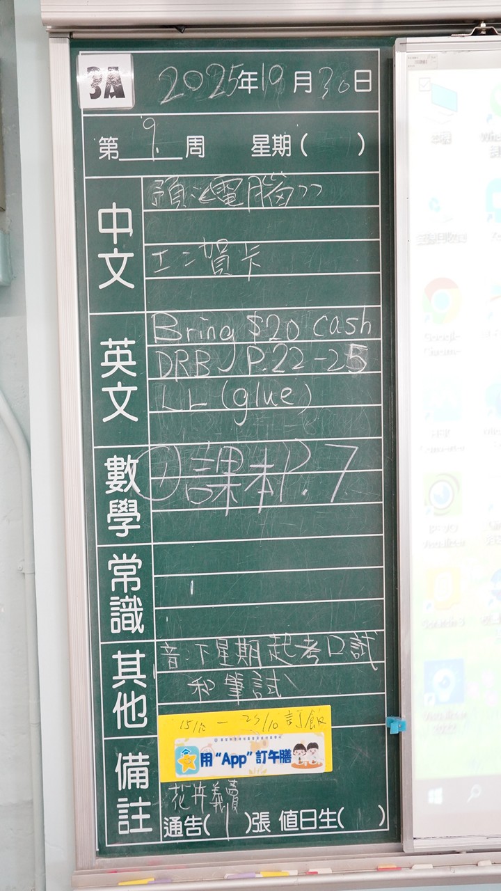 * 注意 :網上家課日誌只供參考,家課內容以上課時老師所述為準,同學應養成即時填寫手冊的習慣 *