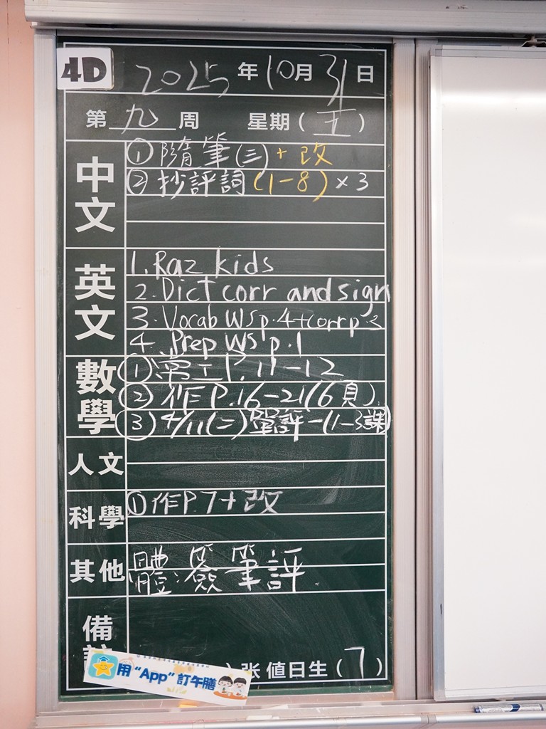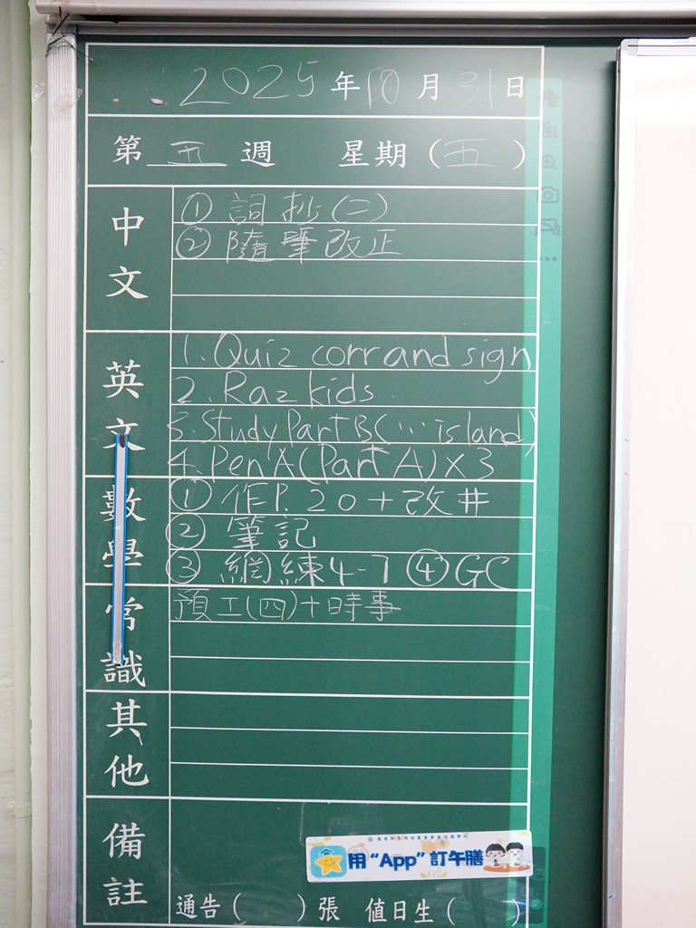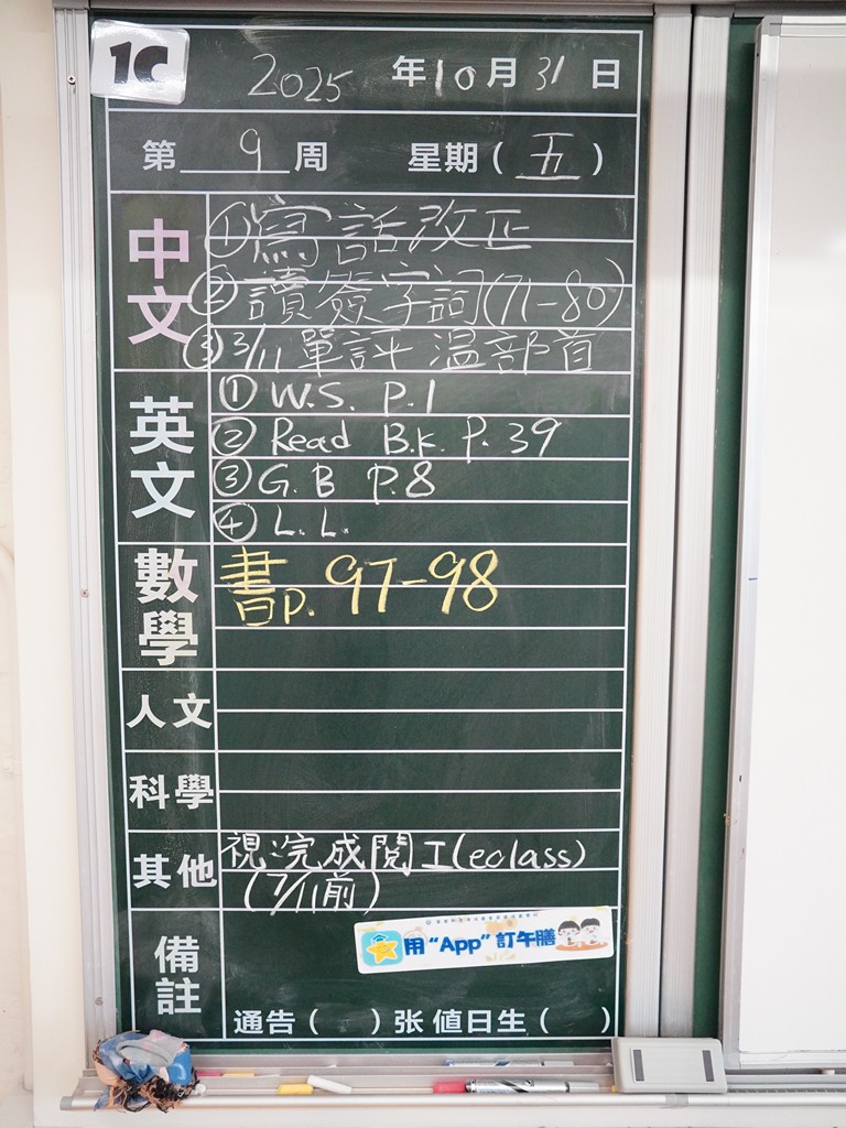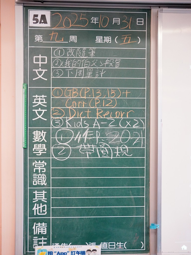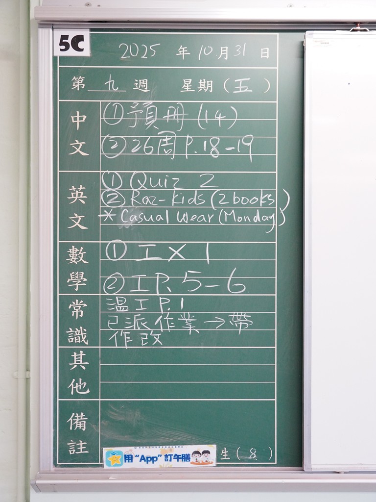 * 注意 :網上家課日誌只供參考,家課內容以上課時老師所述為準,同學應養成即時填寫手冊的習慣 *