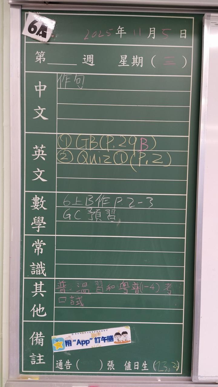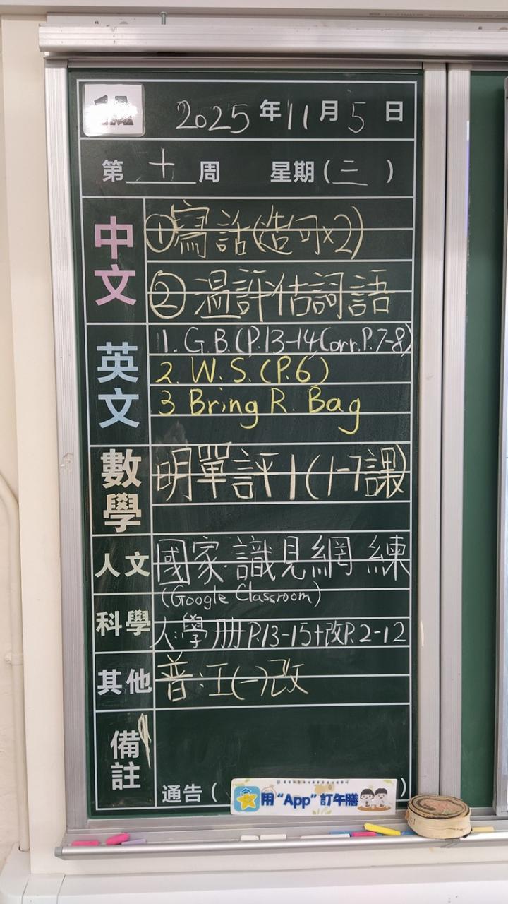 一至六年級家課