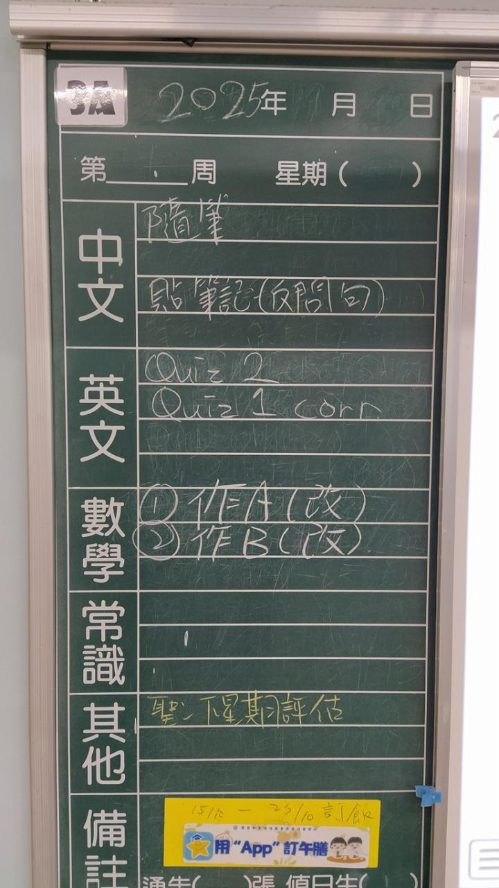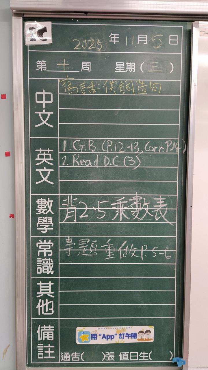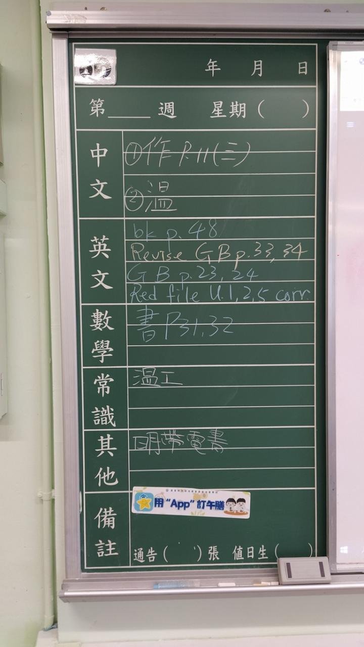 * 注意 :網上家課日誌只供參考,家課內容以上課時老師所述為準,同學應養成即時填寫手冊的習慣 *