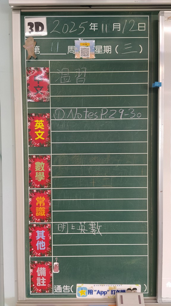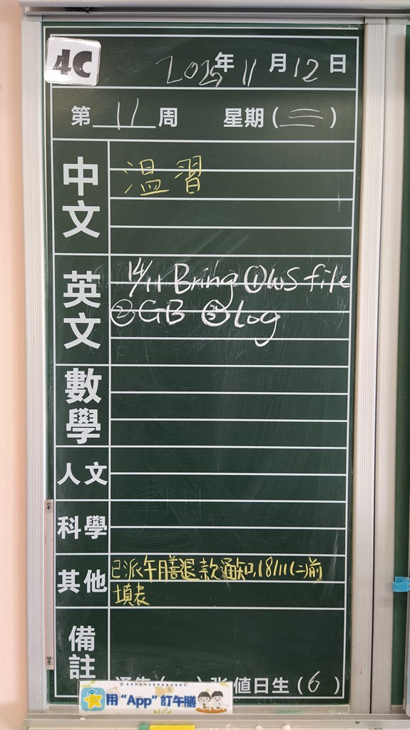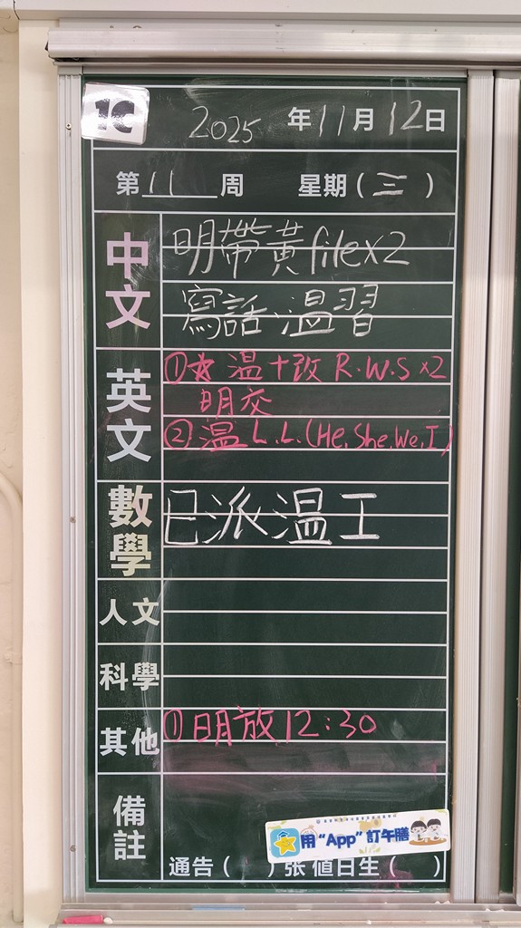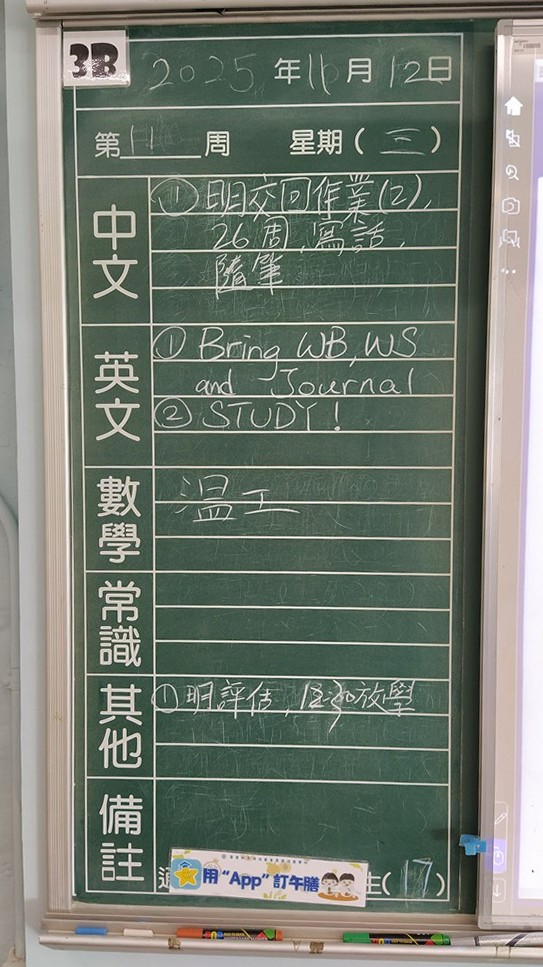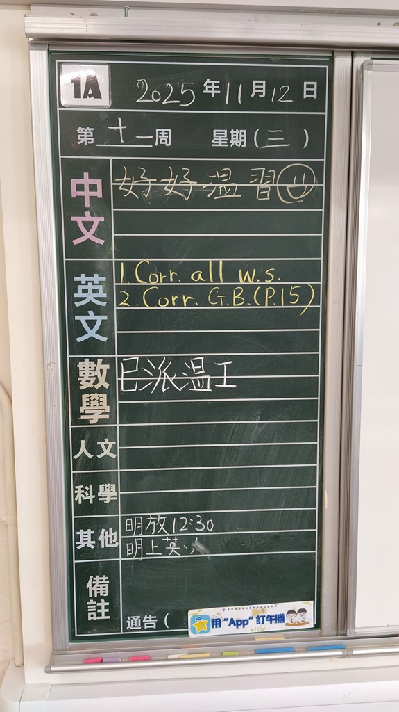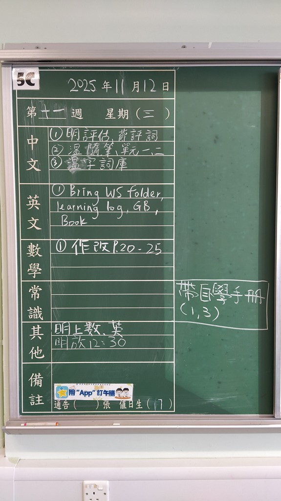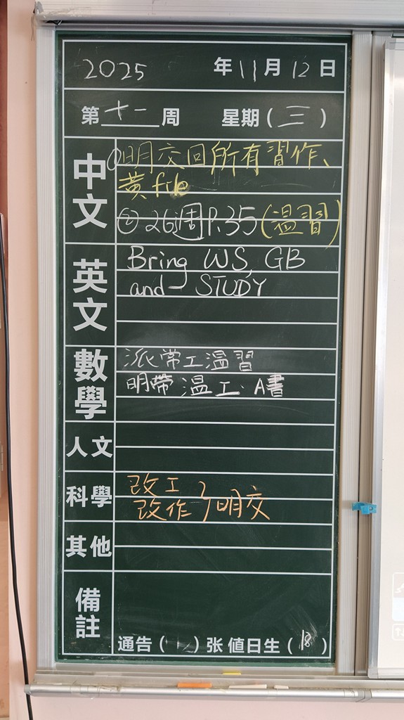 * 注意 :網上家課日誌只供參考,家課內容以上課時老師所述為準,同學應養成即時填寫手冊的習慣 *