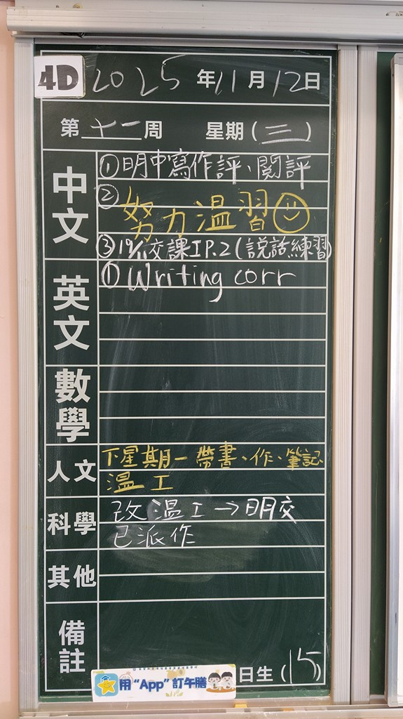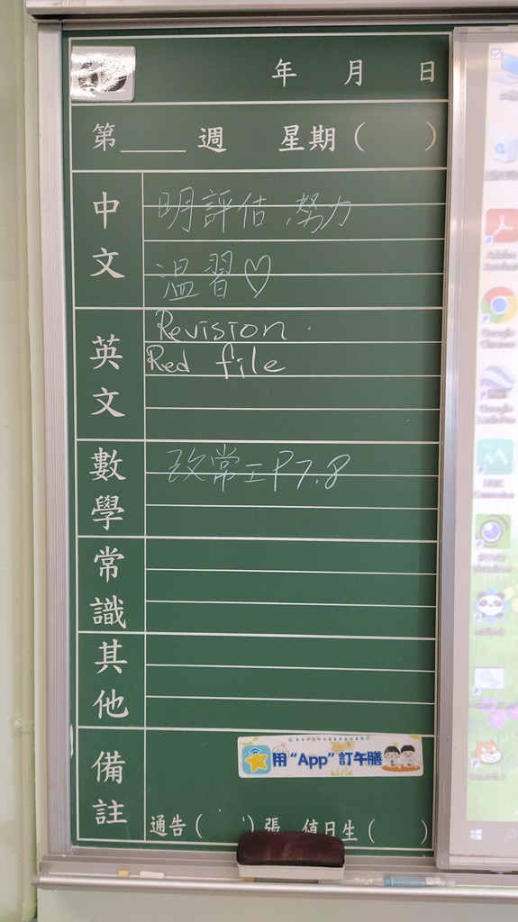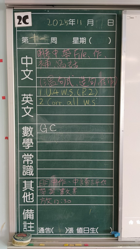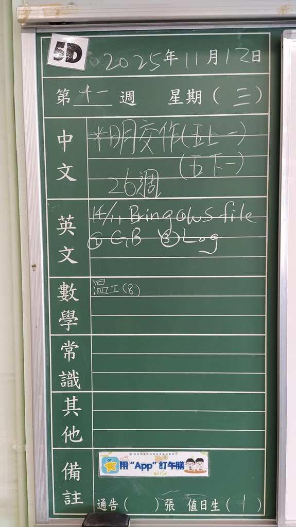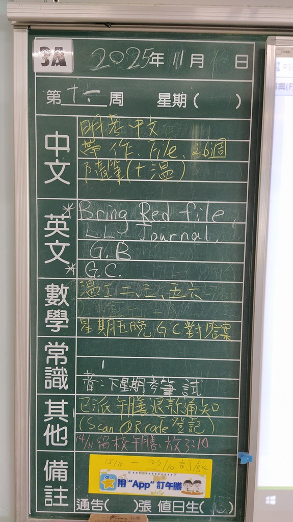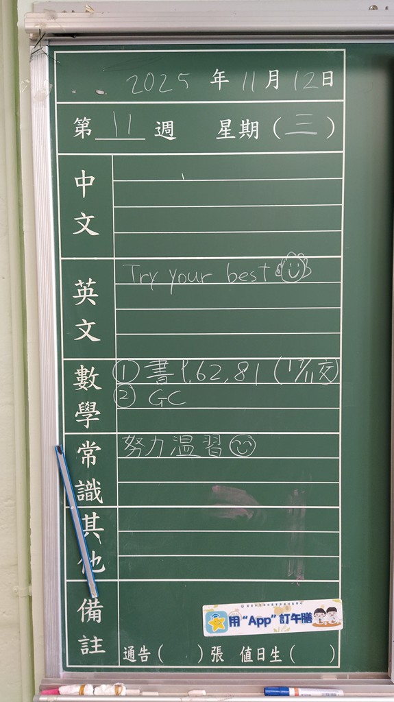 * 注意 :網上家課日誌只供參考,家課內容以上課時老師所述為準,同學應養成即時填寫手冊的習慣 *