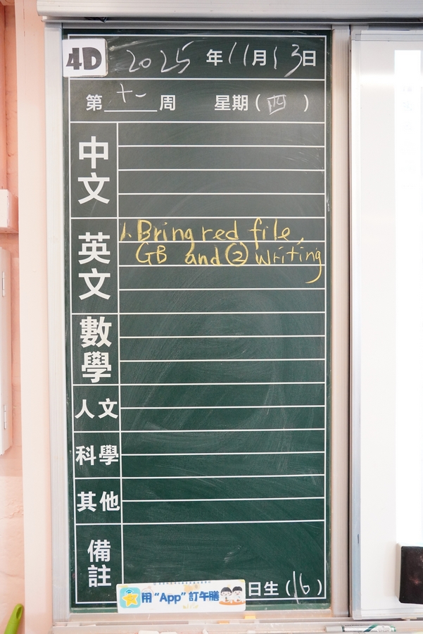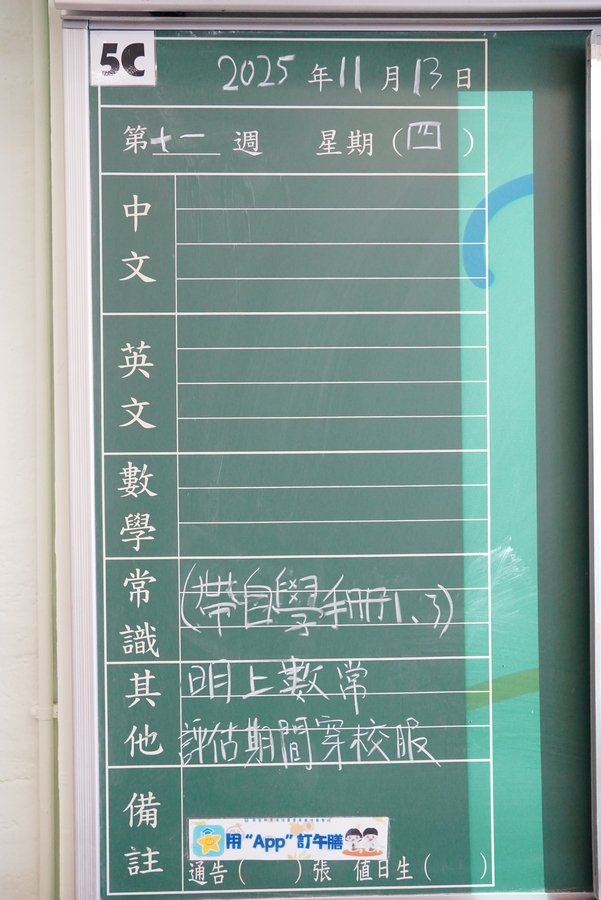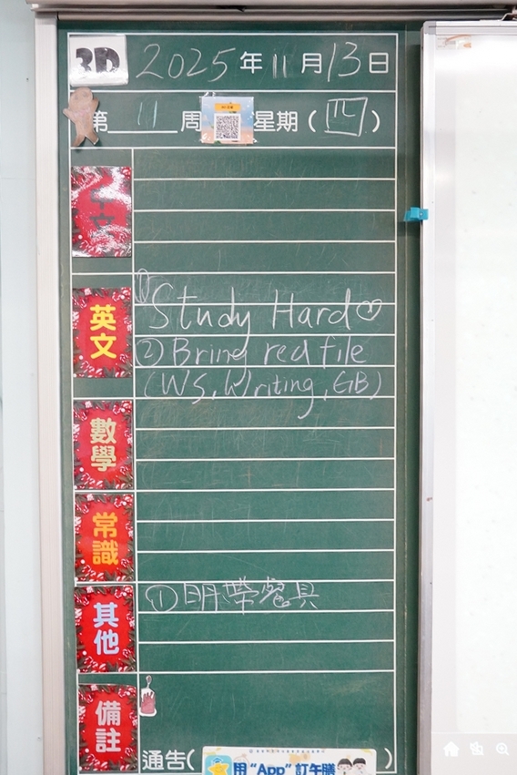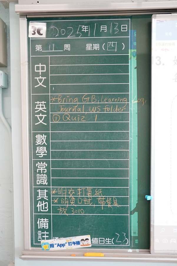 * 注意 :網上家課日誌只供參考,家課內容以上課時老師所述為準,同學應養成即時填寫手冊的習慣 *